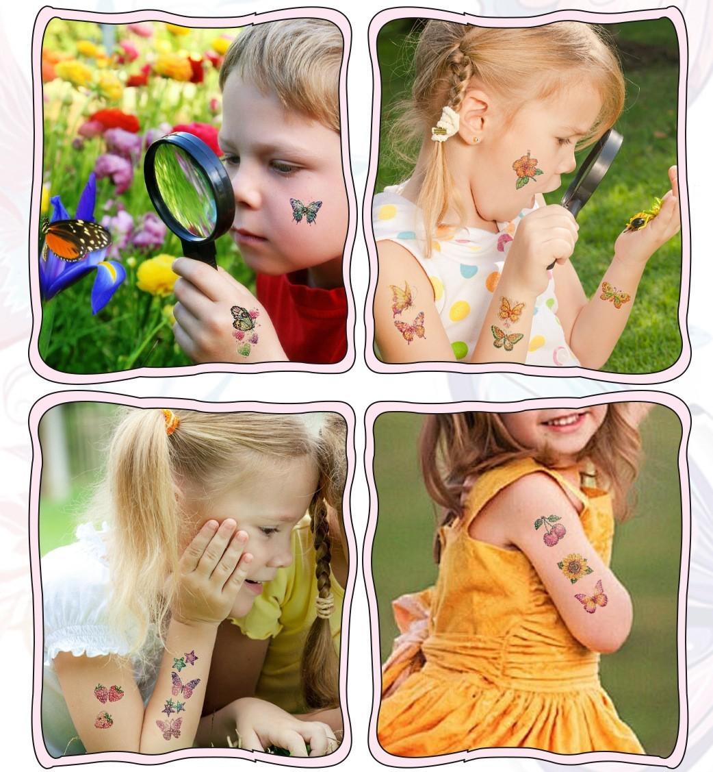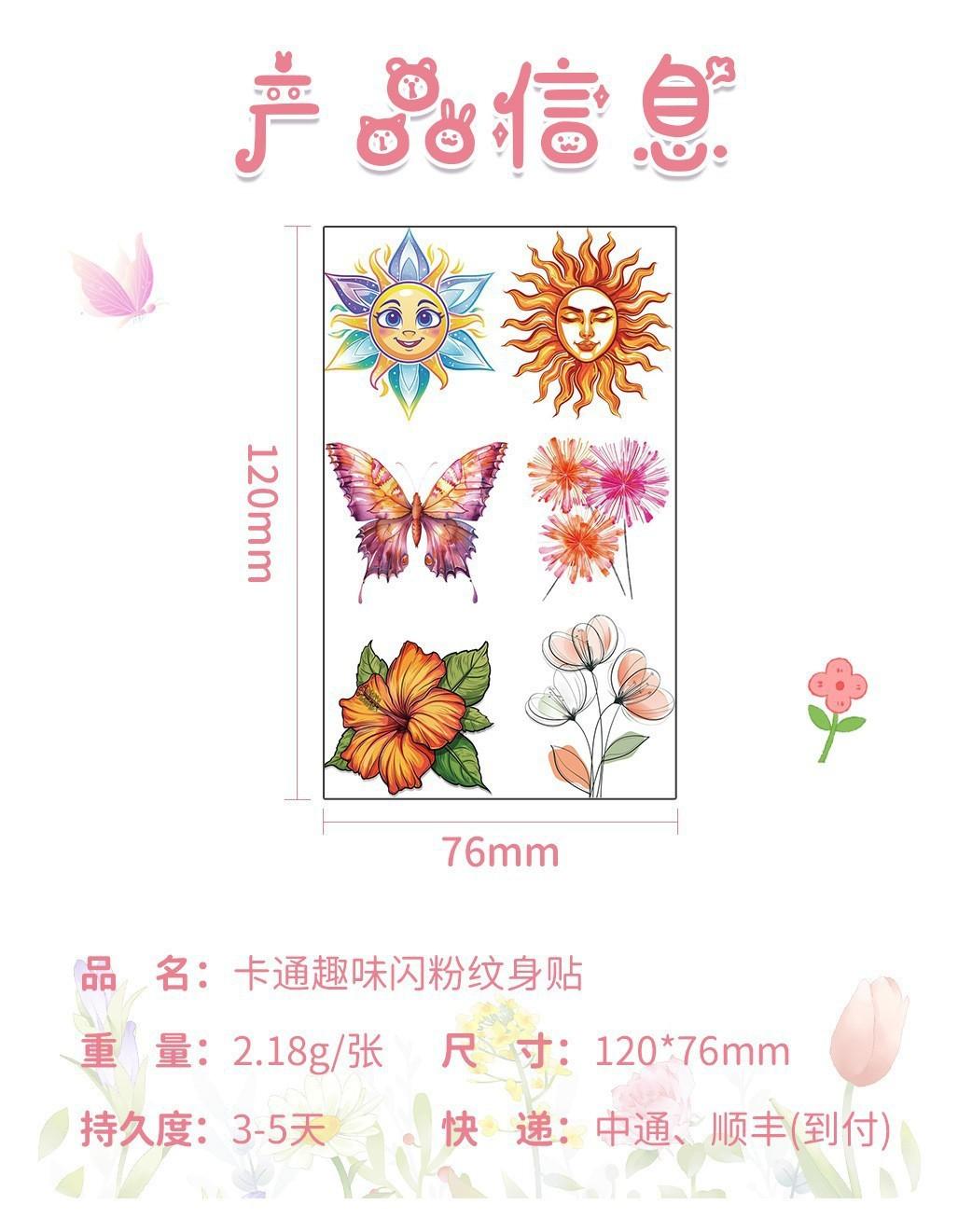 Transfronterizo Nuevo Brillo Dibujo Animado Flor y Pájaro Mariposa Tatuaje Infantil Impermeable Fiesta Regalo de Vacaciones Tatuaje Temporal