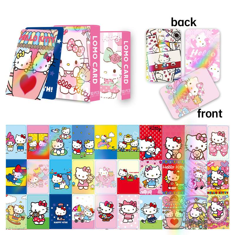 Tarjeta flash láser Kitty doble cara 30 tarjetas pequeñas Tarjeta LOMO animación periférico tarjeta fotográfica tarjeta coleccionable