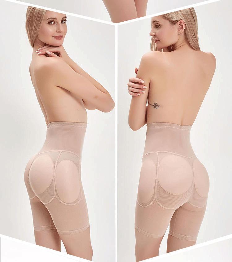 Pantalones moldeadores de cintura alta con cuatro almohadillas de esponja para caderas y abdomen completos. Ropa interior ajustada para cintura y abdomen.