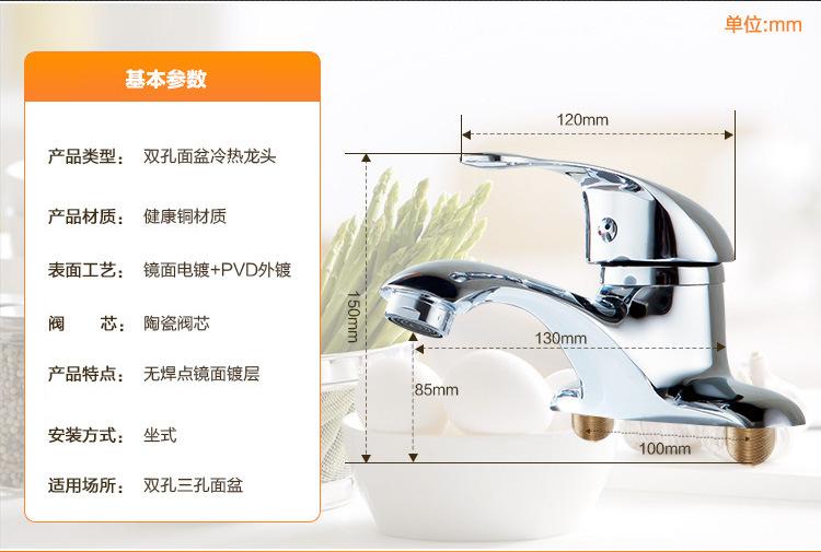 Grifo de lavabo de cobre de dos vías para baño, grifo mezclador de agua fría y caliente para lavabo doméstico.