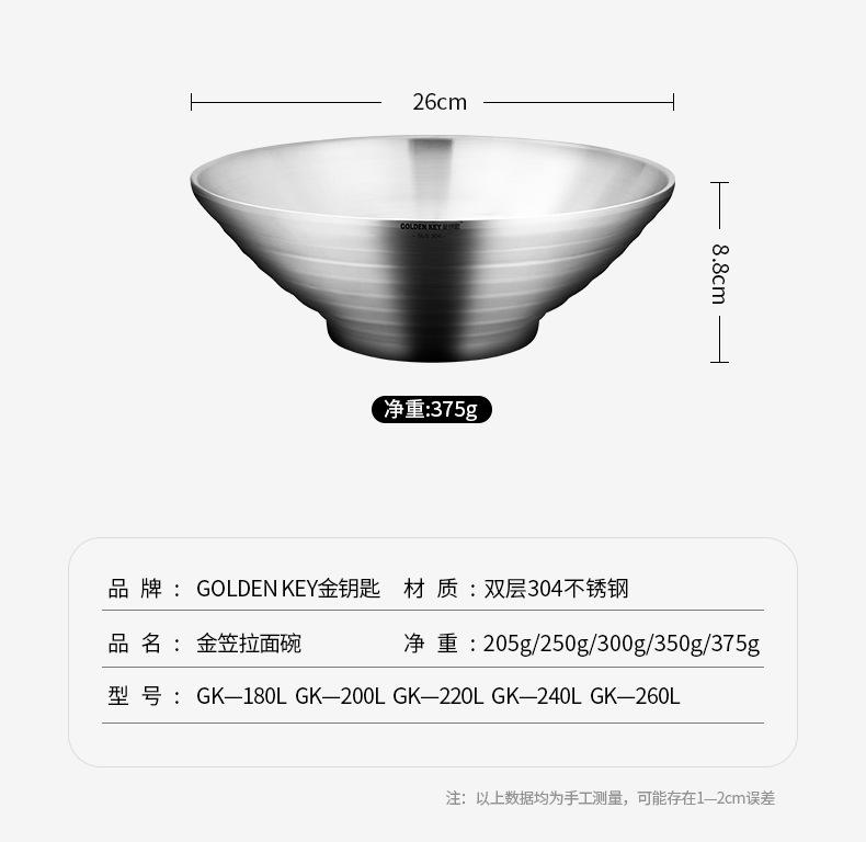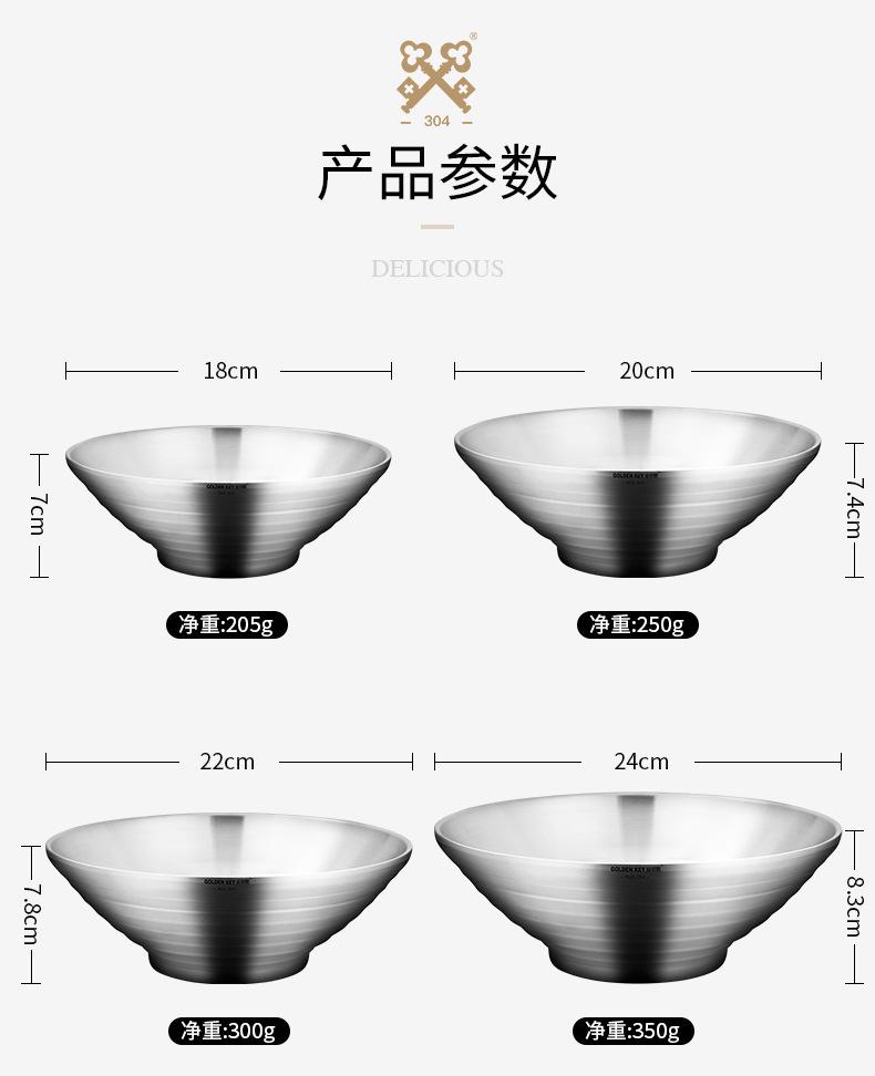 Tazón grande de acero inoxidable 304 para el hogar, tazón para sopa de fideos, tazón para arroz con doble aislamiento, tazón para sopa, tazón grande para fideos instantáneos