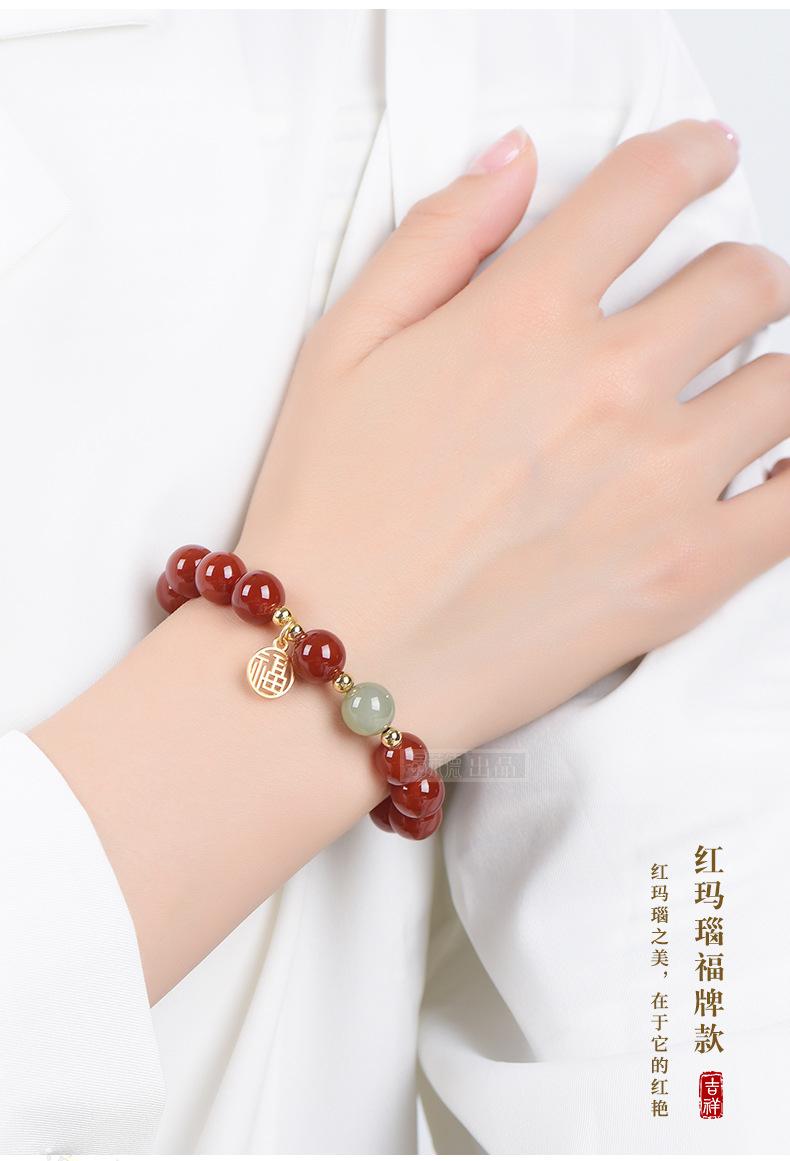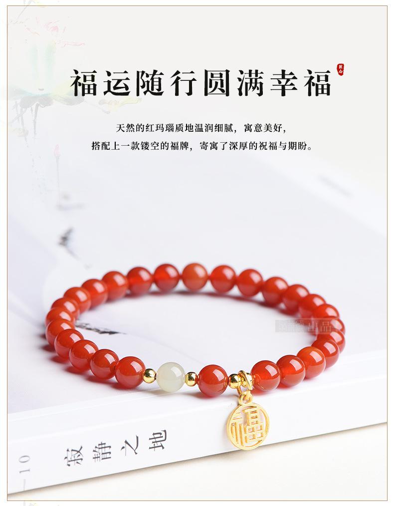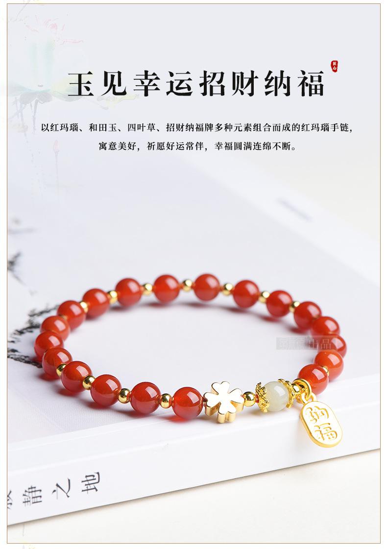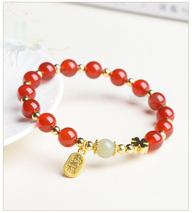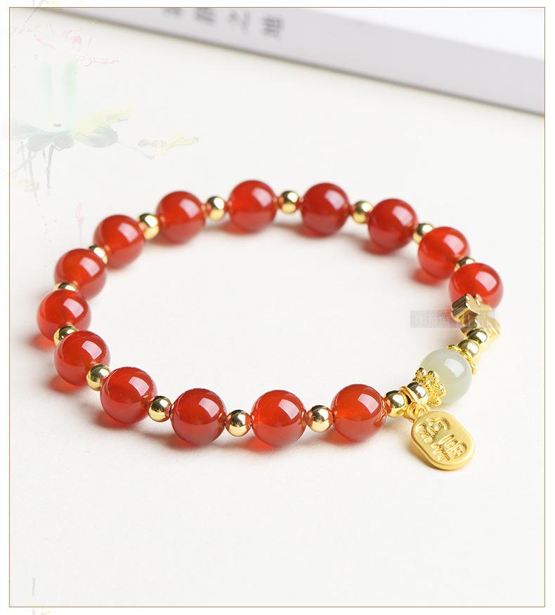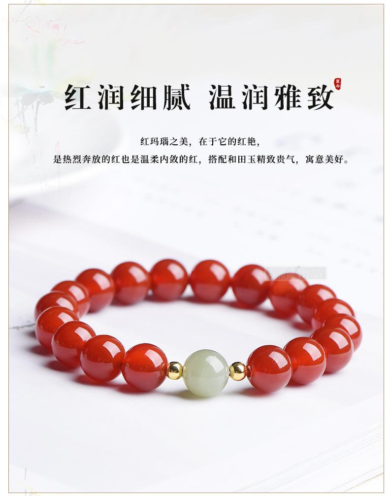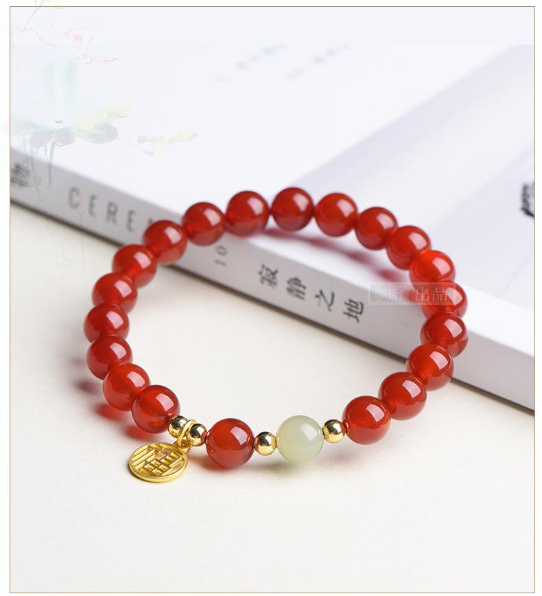 Compra Pulsera de Ágata Roja Natural para Mujer Rojo Chino Original Pequeña de Alta Calidad Jade Hetian Accesorios de Metal Pulsera Marca Fu al por mayor en Joom.pro