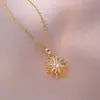 Compra Collar Femenino Celebridad de Internet Circonita Colorida Flor Giratoria Nicho Moda Nuevo Diseño Colgante Temperamento Collar de Acero de Titanio al por mayor en Joom.pro