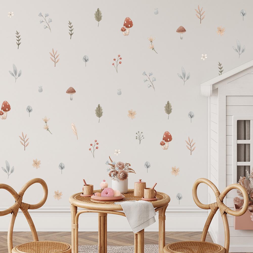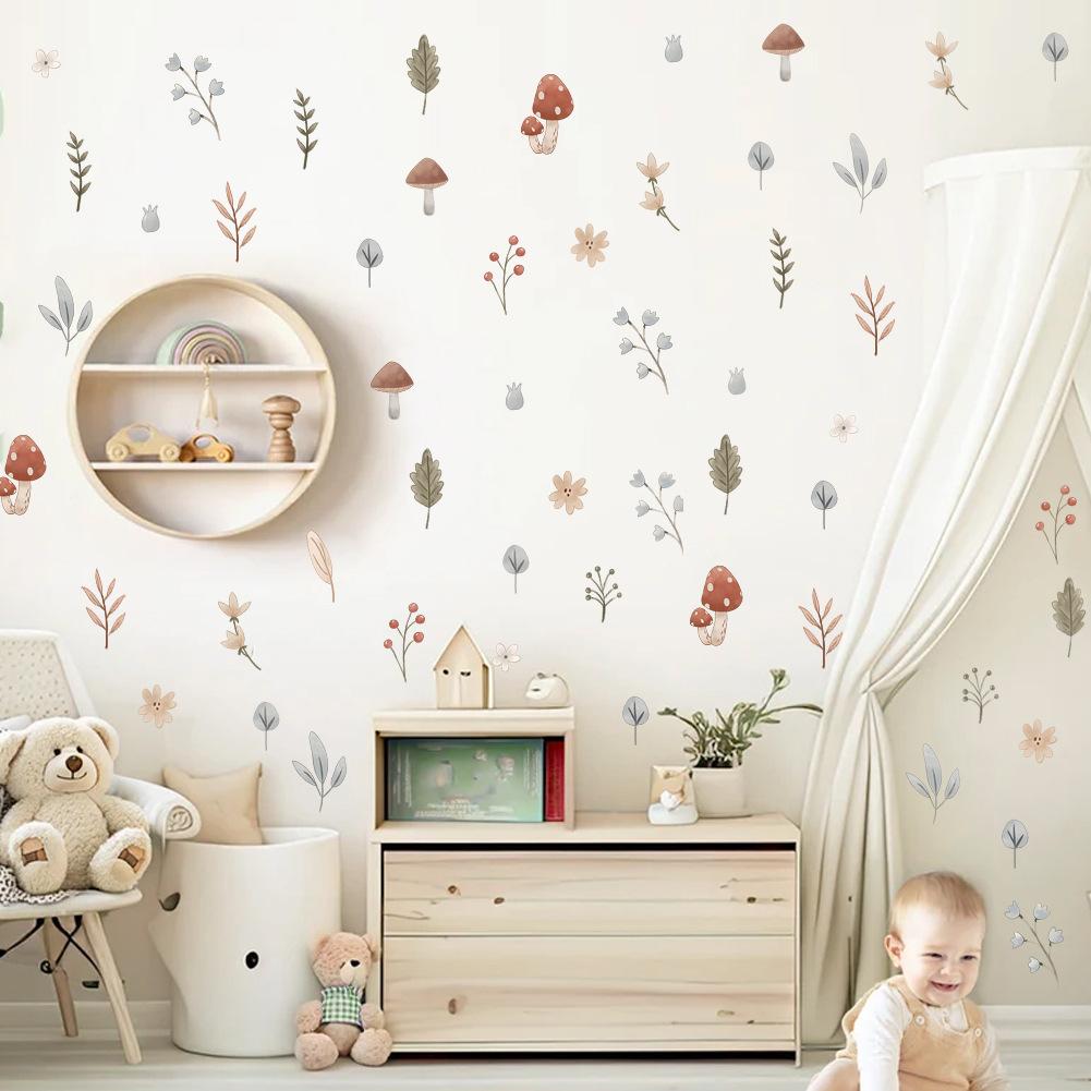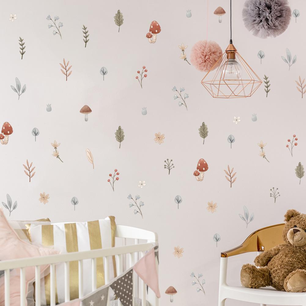 Pegatinas de pared con hojas de plantas para habitación infantil, dormitorio, mesita de noche, guardería, papel pintado decorativo, autoadhesivo, extraíble