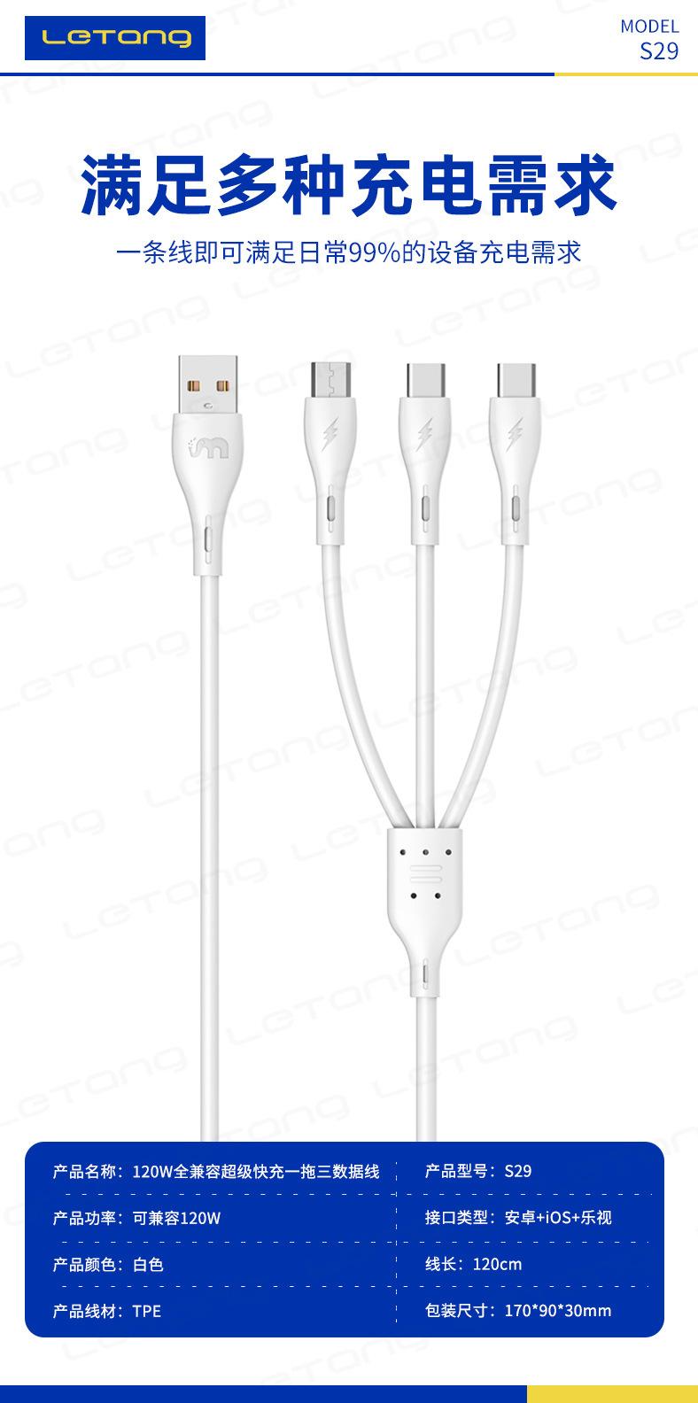 S29 one-to-three 120W fast charging data cable [boxed]]