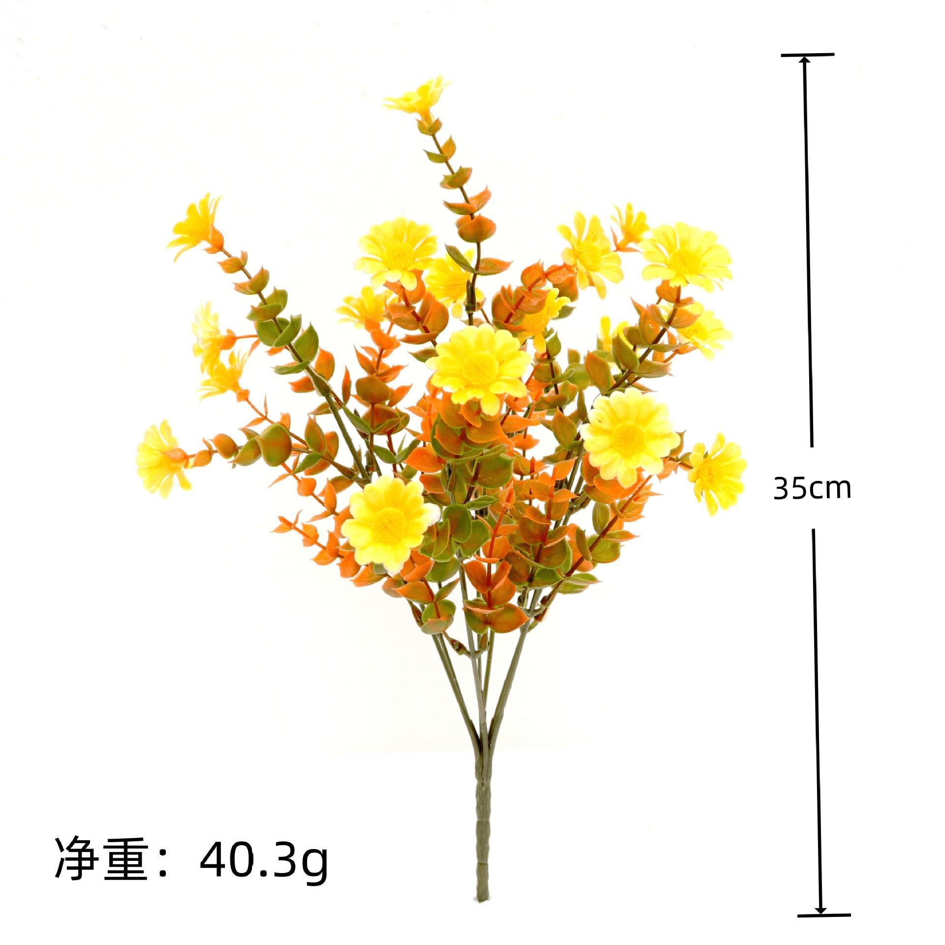 Planta de simulación de otoño transfronteriza de Amazon, flor falsa de eucalipto, camelia, margarita, violeta, paquete de flores para decoración del hogar