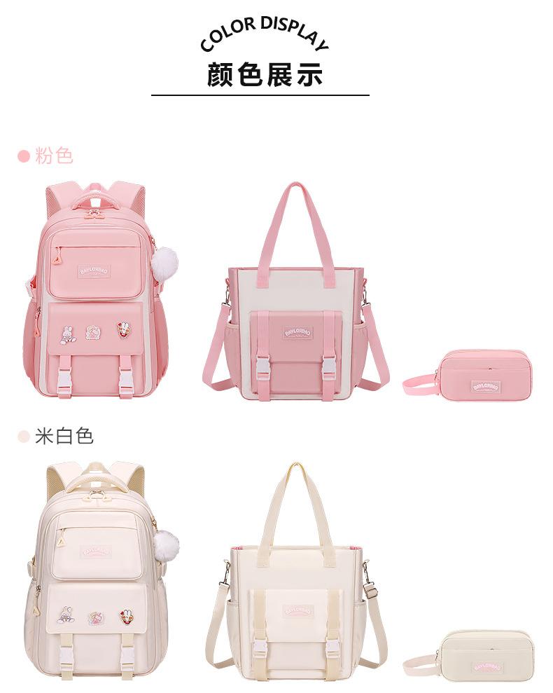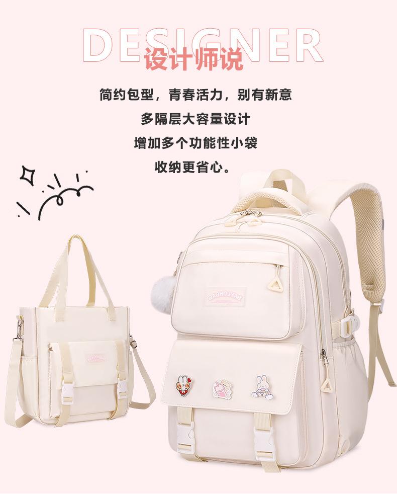 Beige + pencil case + tutorial bag [Grade 1-4 small size]]