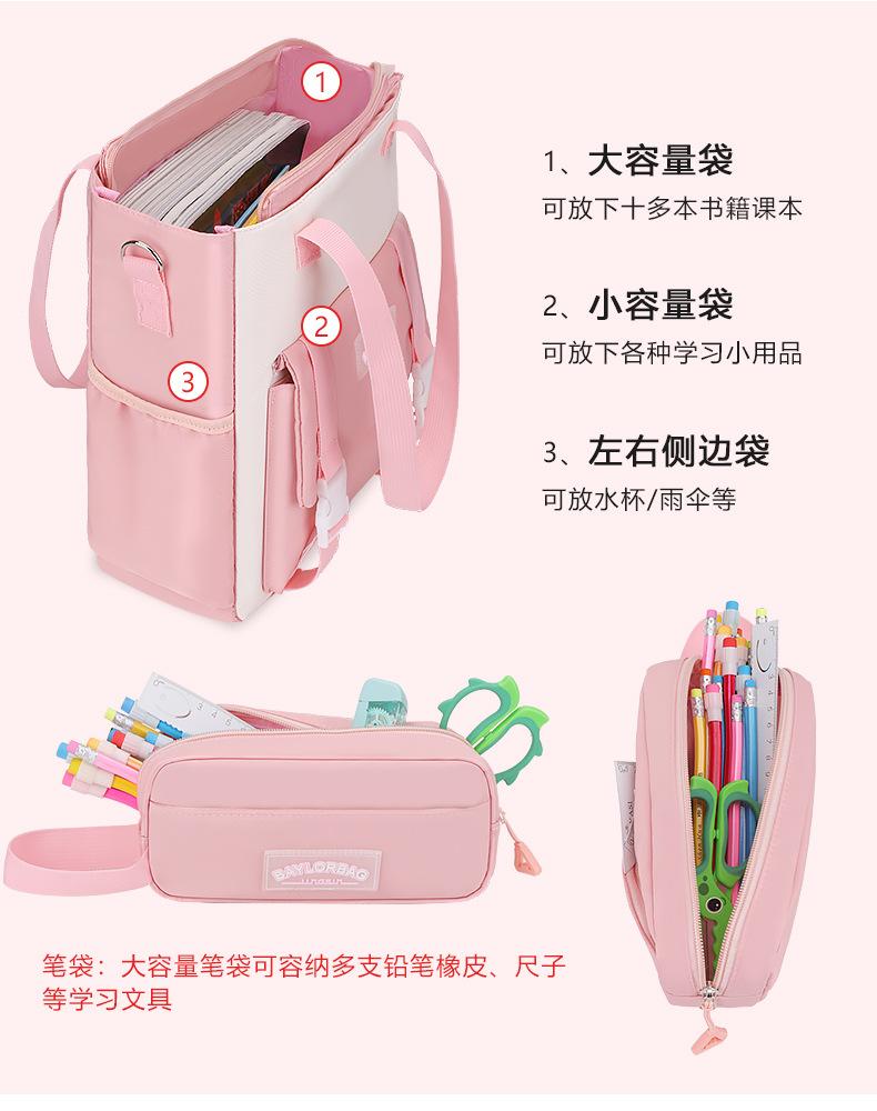 Beige + pencil case + tutorial bag [large Grade 5-9]]
