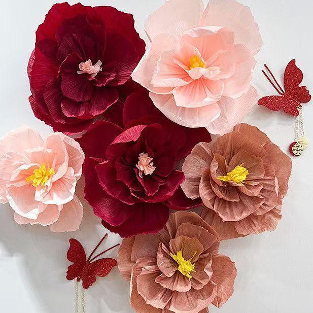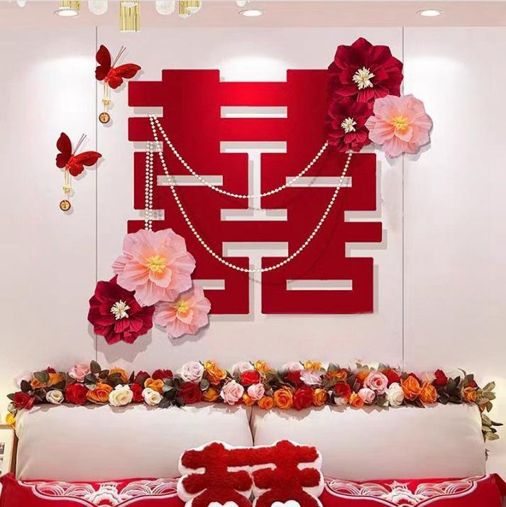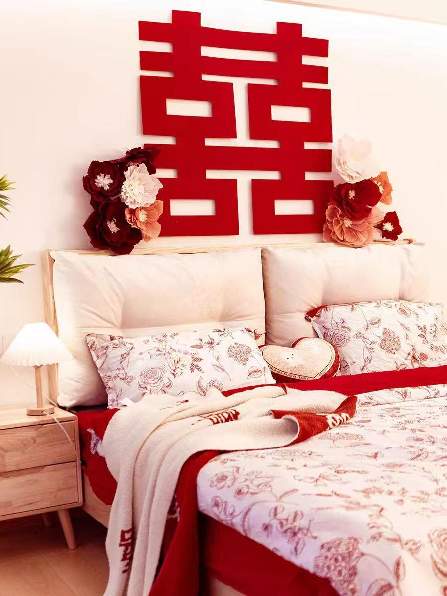 Habitación de bodas flor plisada decoración de flor arrugada tridimensional casa nueva junto a la cama dormitorio diseño pared de fondo boda suministros para boda