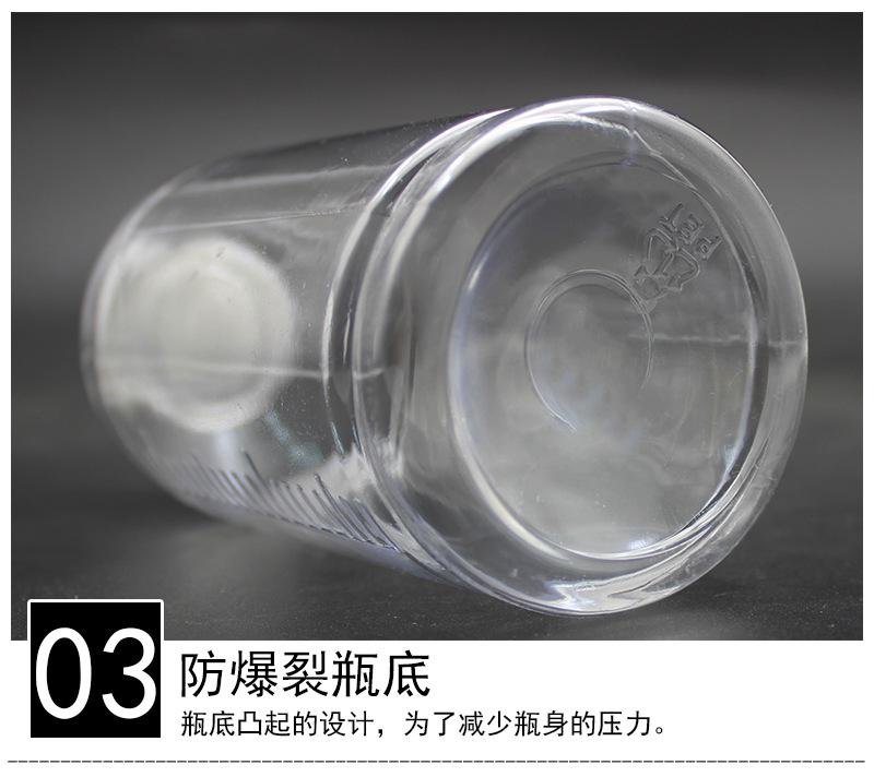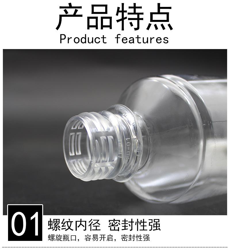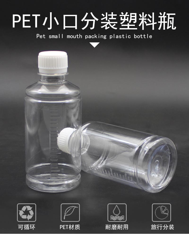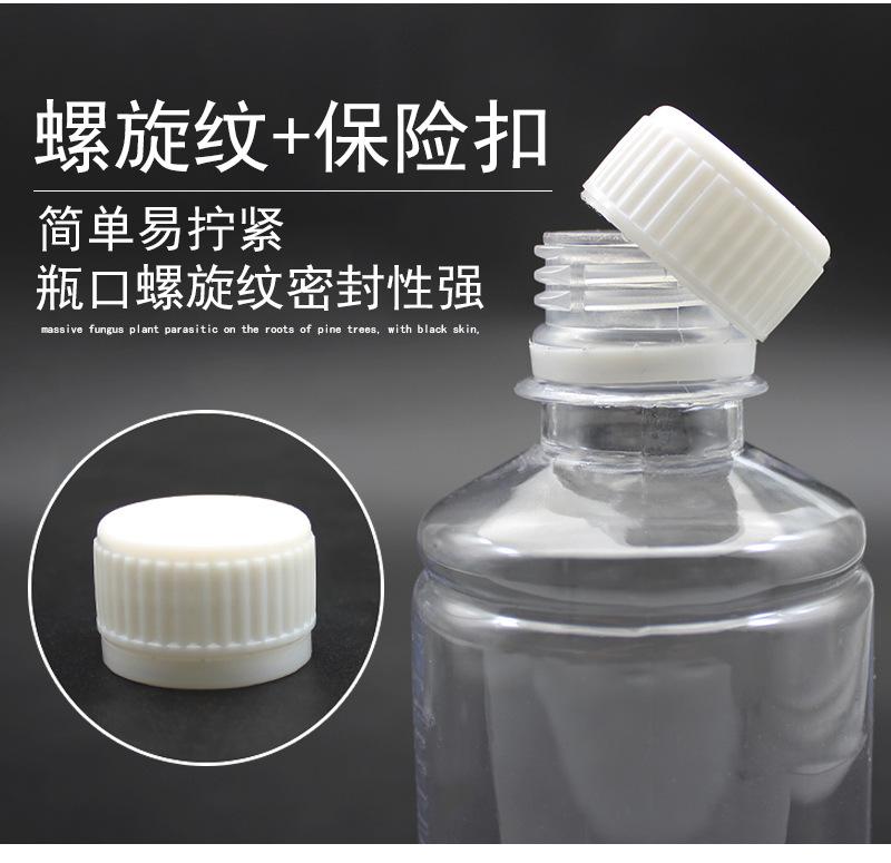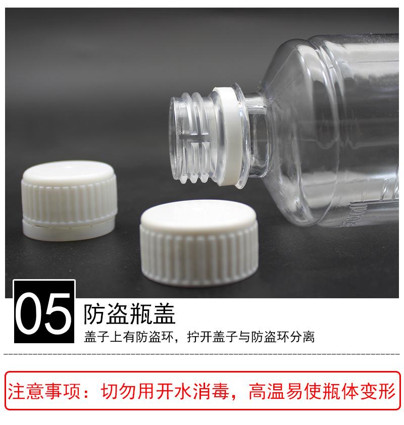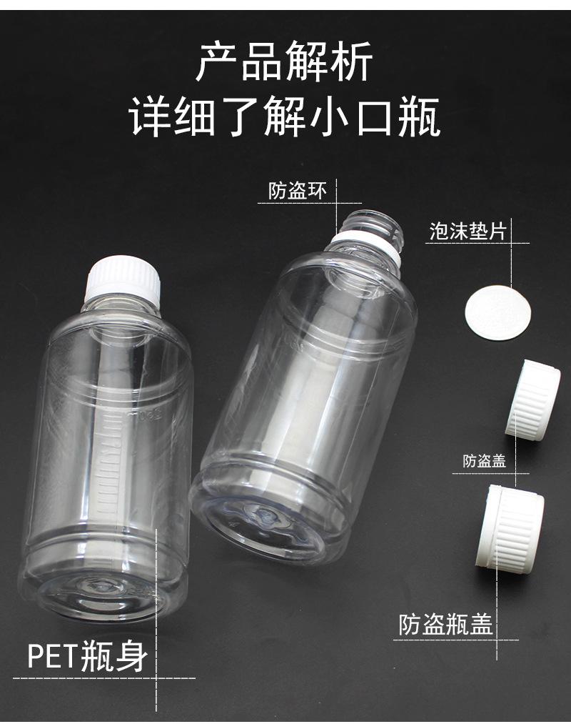 Venta al por mayor de 250 ml con escala, boca pequeña, tapa antirrobo, botella transparente, botella de plástico, botella PET, botella de líquido