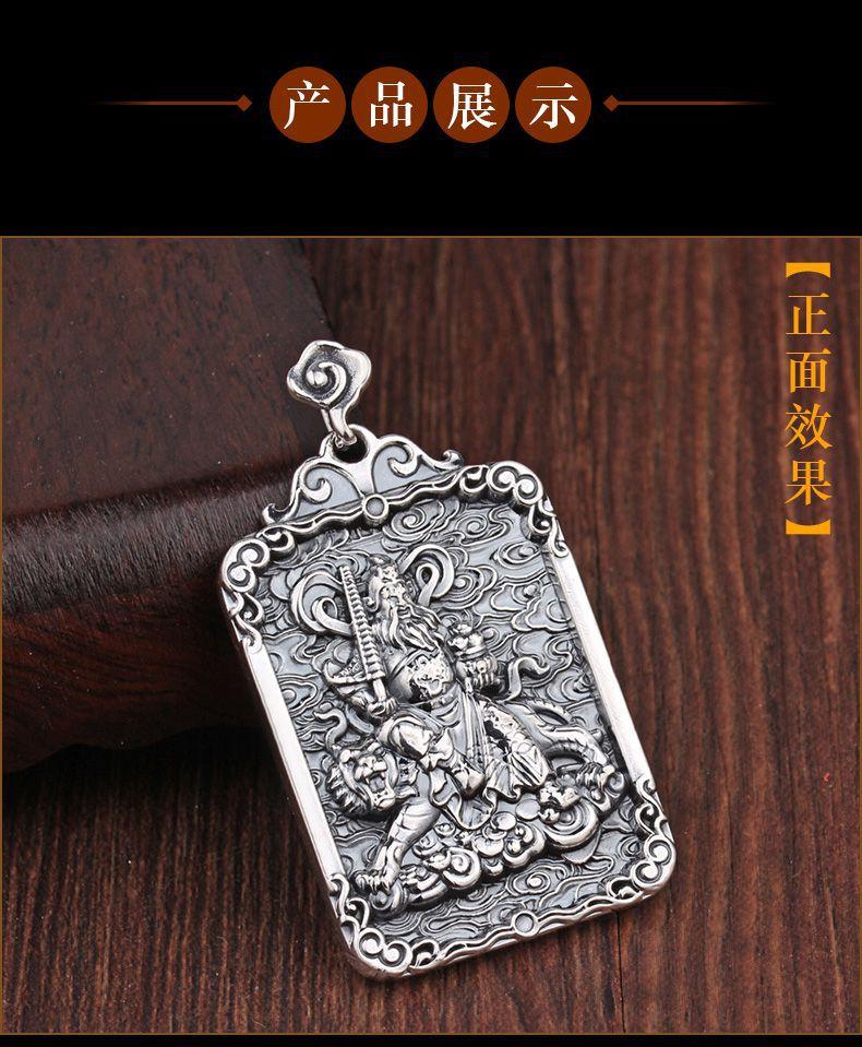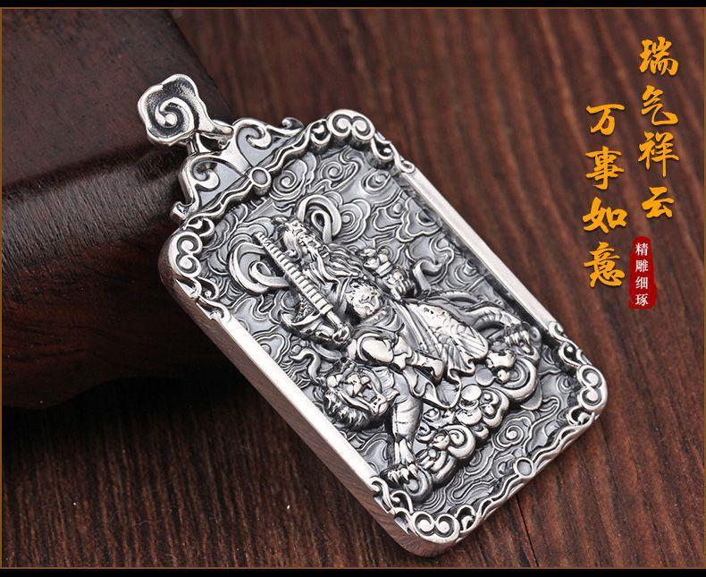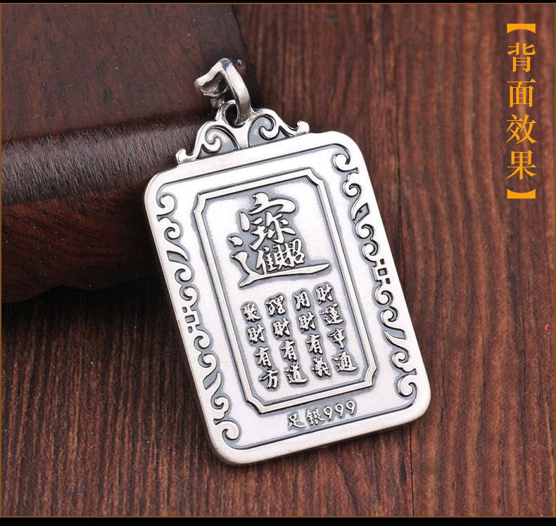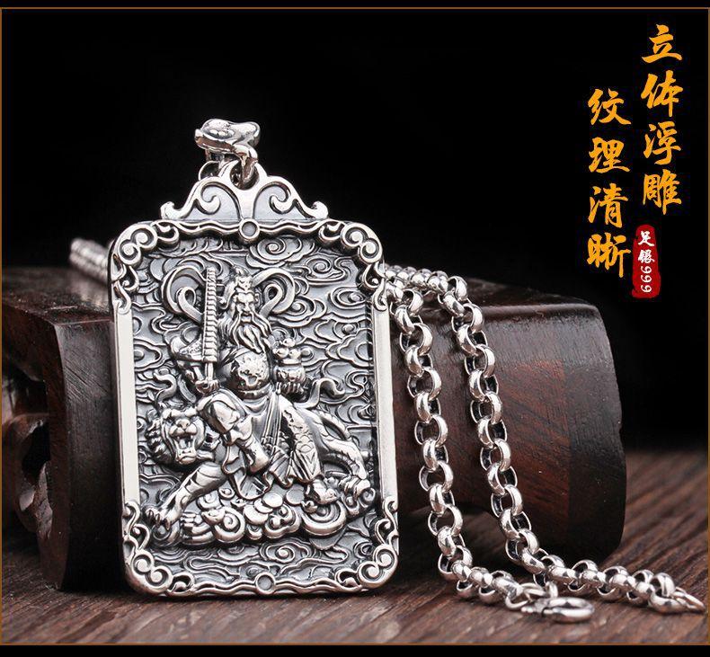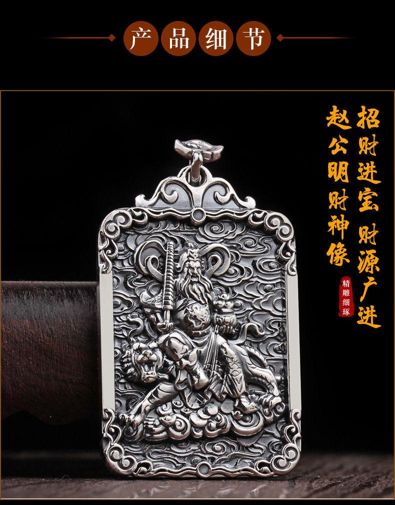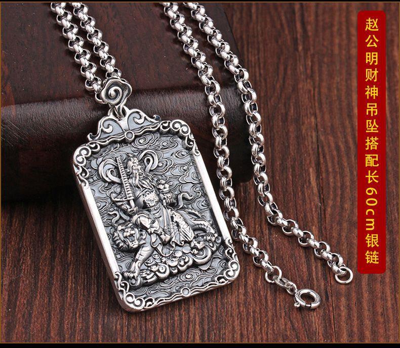 Colgante Zhao Gongming para hombre, plata 999, colgante de cinco vías del dios de la riqueza, collar con personalidad retro, dominante, moderno, colgante de plata esterlina para hombre.