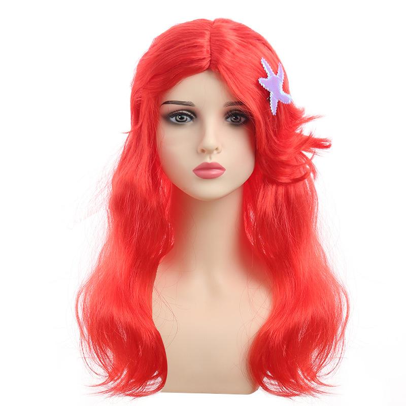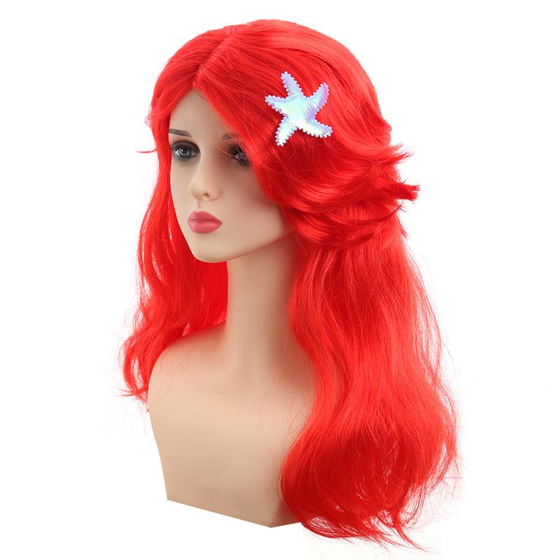 Amazon Halloween Cos Peluca Anime Sirena Roja Larga Ondulada Peluca Ariel Disfraz Peluca Set
