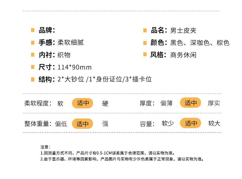 Cartera de moda para hombre con botones cortos, cartera informal multitarjeta, cartera horizontal con borde cruzado, cartera para hombre, venta directa de fábrica en stock