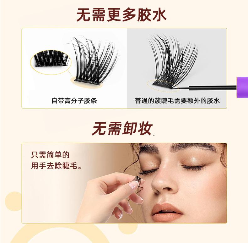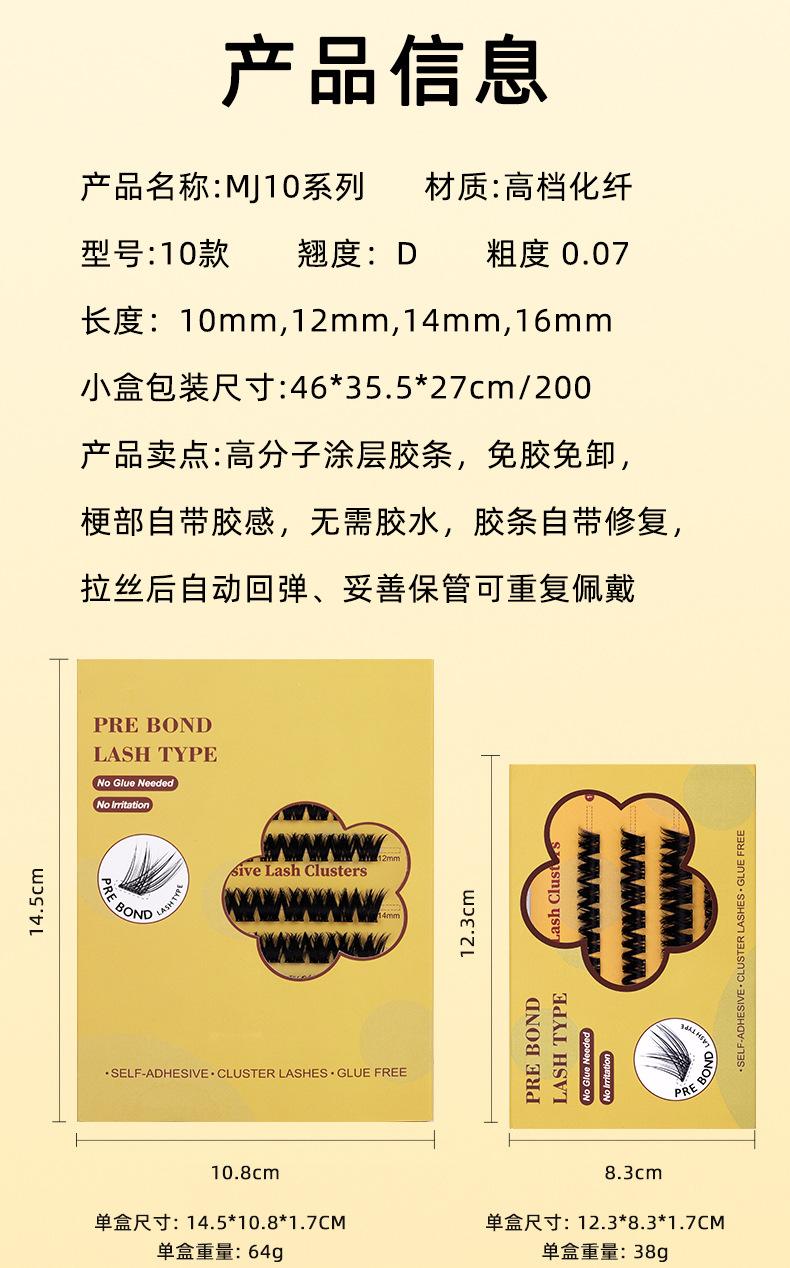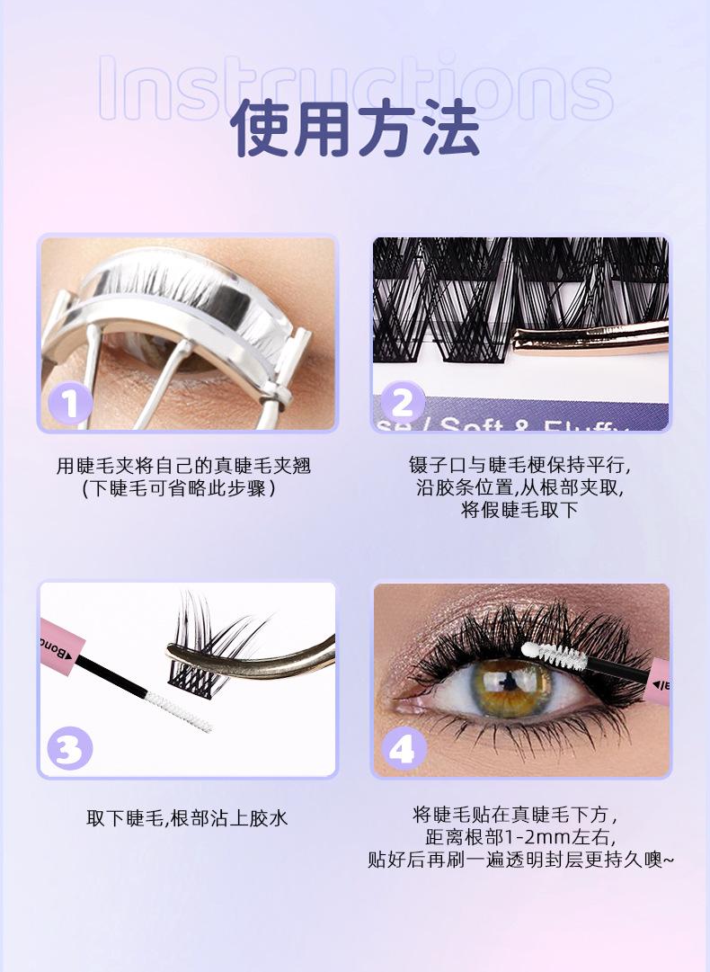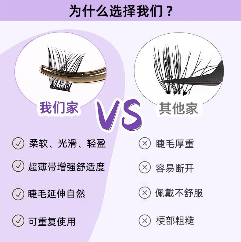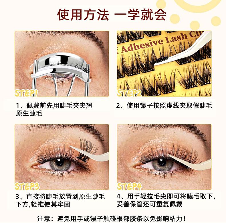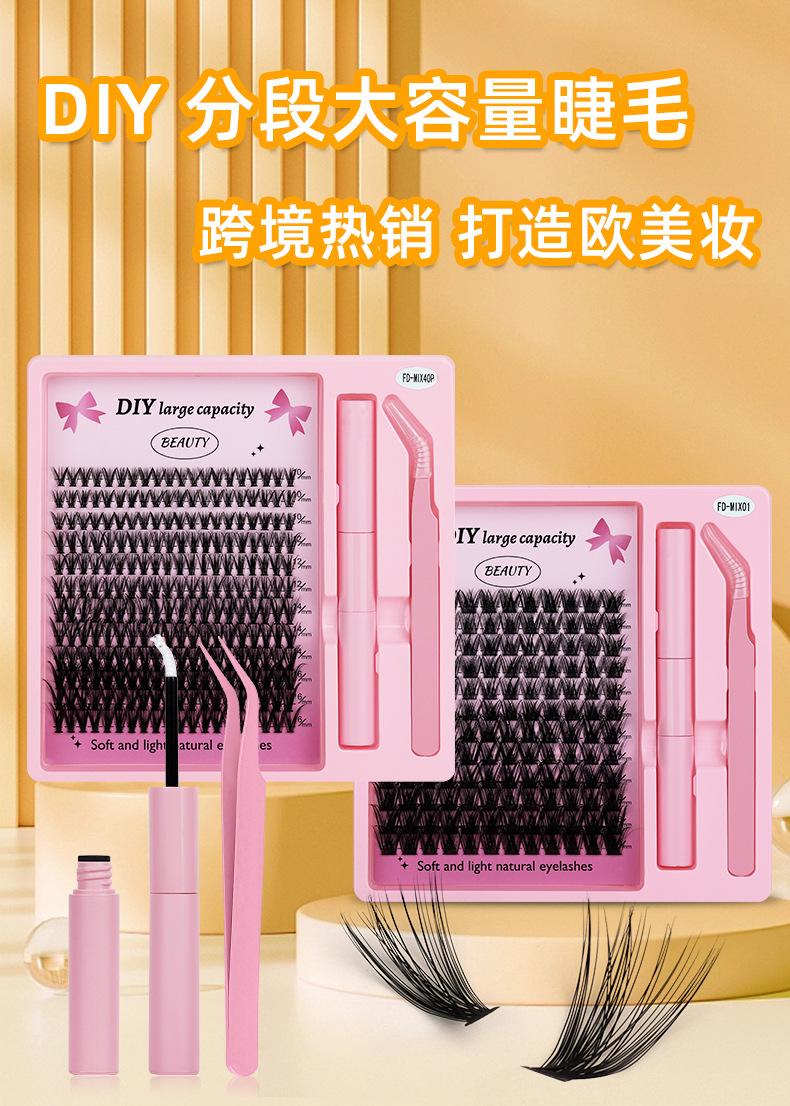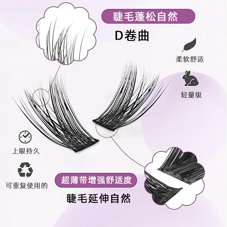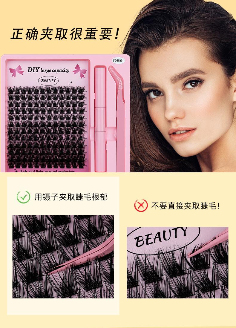 Set de Pestañas Postizas Segmentadas Transfronterizas 144 Pestañas de Racimo Único de Fusión Caliente Tallo Duro Rizadoras Set de Pegamento para Pestañas