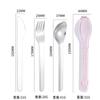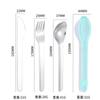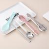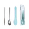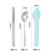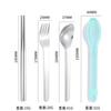 Juego de vajilla portátil de tres piezas de acero inoxidable 304 para estudiantes, juego de vajilla para exteriores, caja de regalo con cuchara, tenedor y palillos.