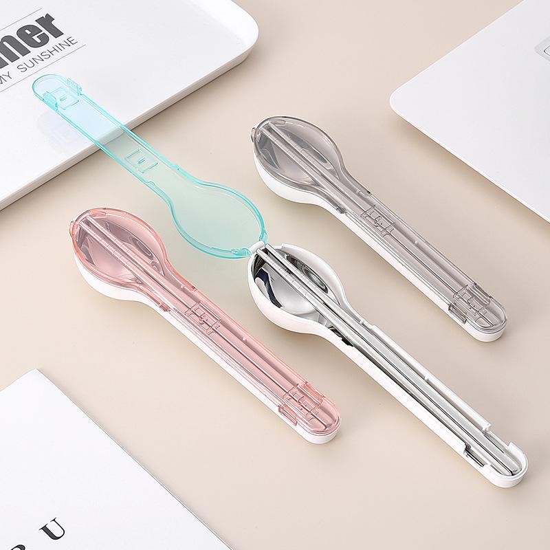 Compra Juego de vajilla portátil de tres piezas de acero inoxidable 304 para estudiantes, juego de vajilla para exteriores, caja de regalo con cuchara, tenedor y palillos. al por mayor en Joom.pro