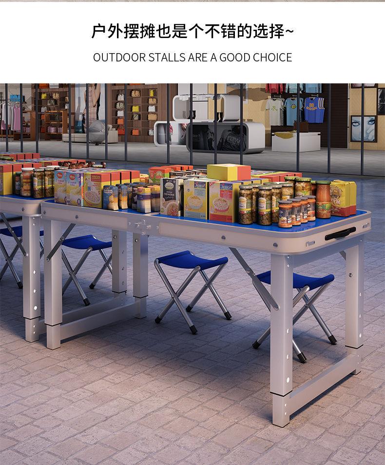 Mesa plegable larga, portátil, ligera, elevable, para suelo, para exteriores, mesa plegable y silla.