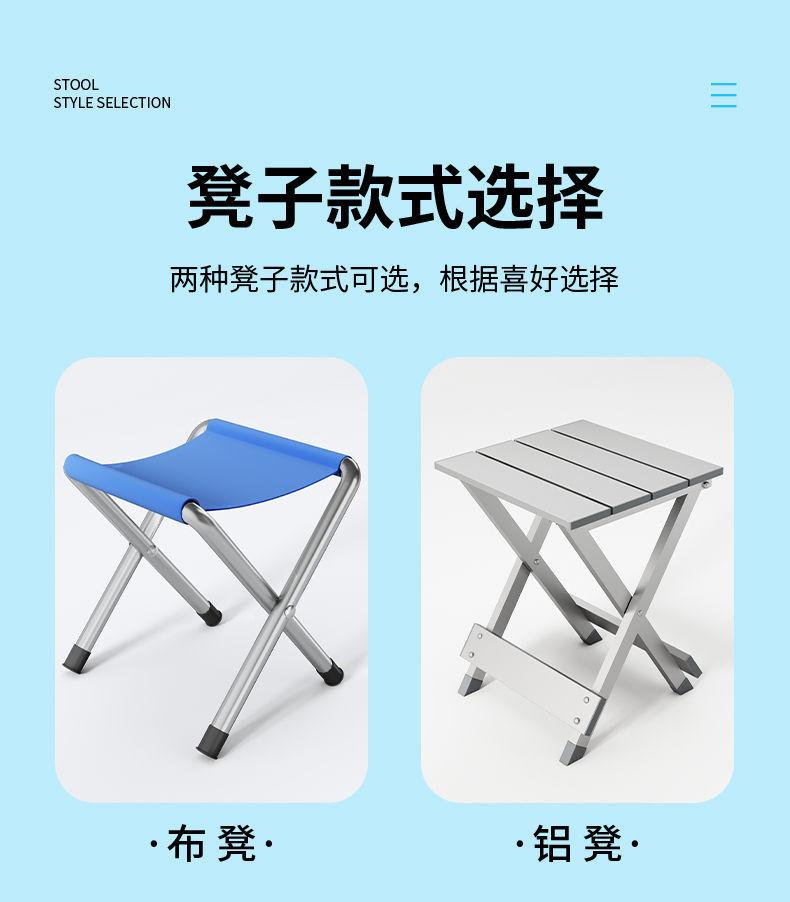 single table, 2 cloth stool, 4 cloth stool, 2 aluminum stools, 4 Aluminum Stool, 6 cloth stool