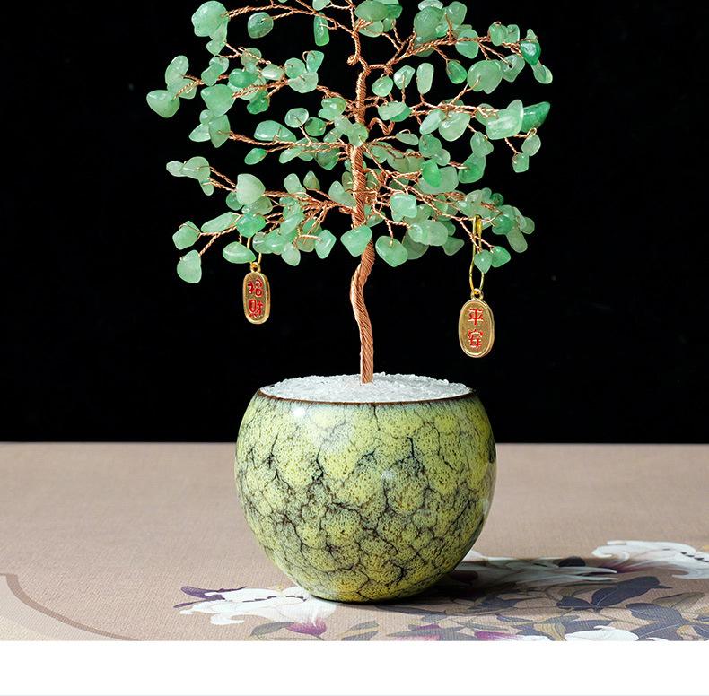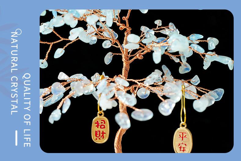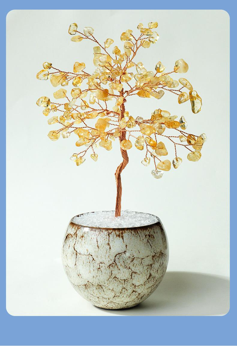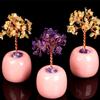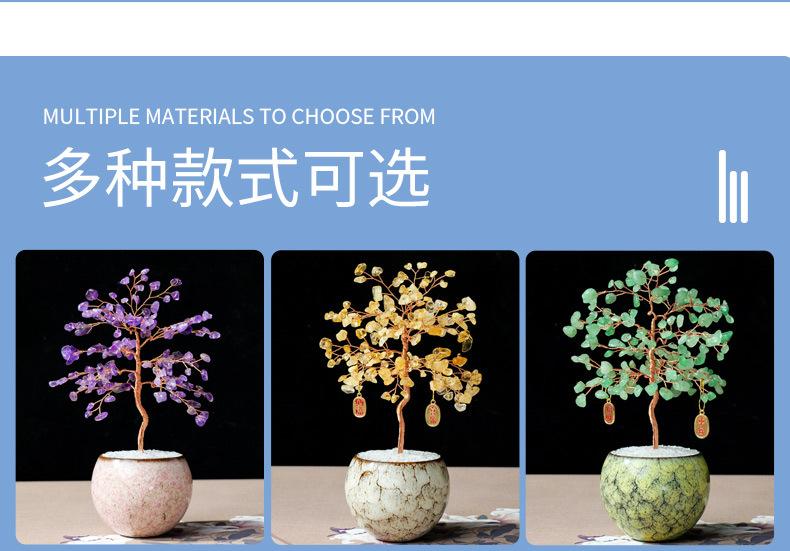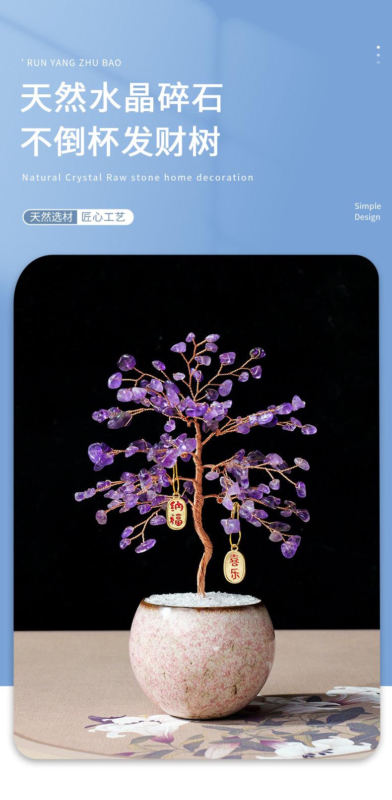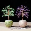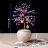 Árbol de la fortuna con copa de grava de amatista natural, artesanía de cristal tejida a mano, adornos de escritorio para el hogar y la oficina.