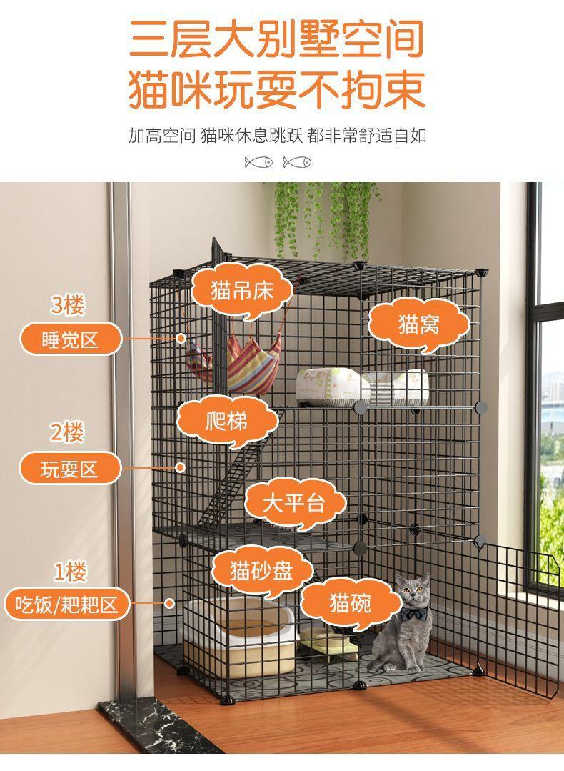 Jaula para Gatos Hogar Interior Extra Grande Espacio Libre Casa para Gatos Gatito Nido Jaula para Mascotas Tres Pisos Villa para Gatos Pequeños