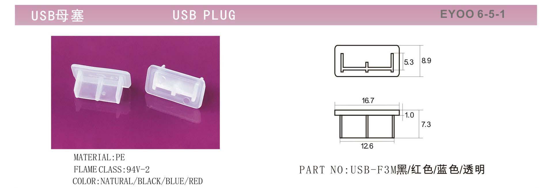 USB female PE covering-Black