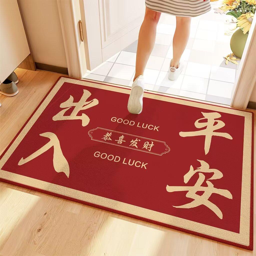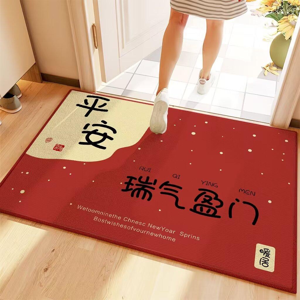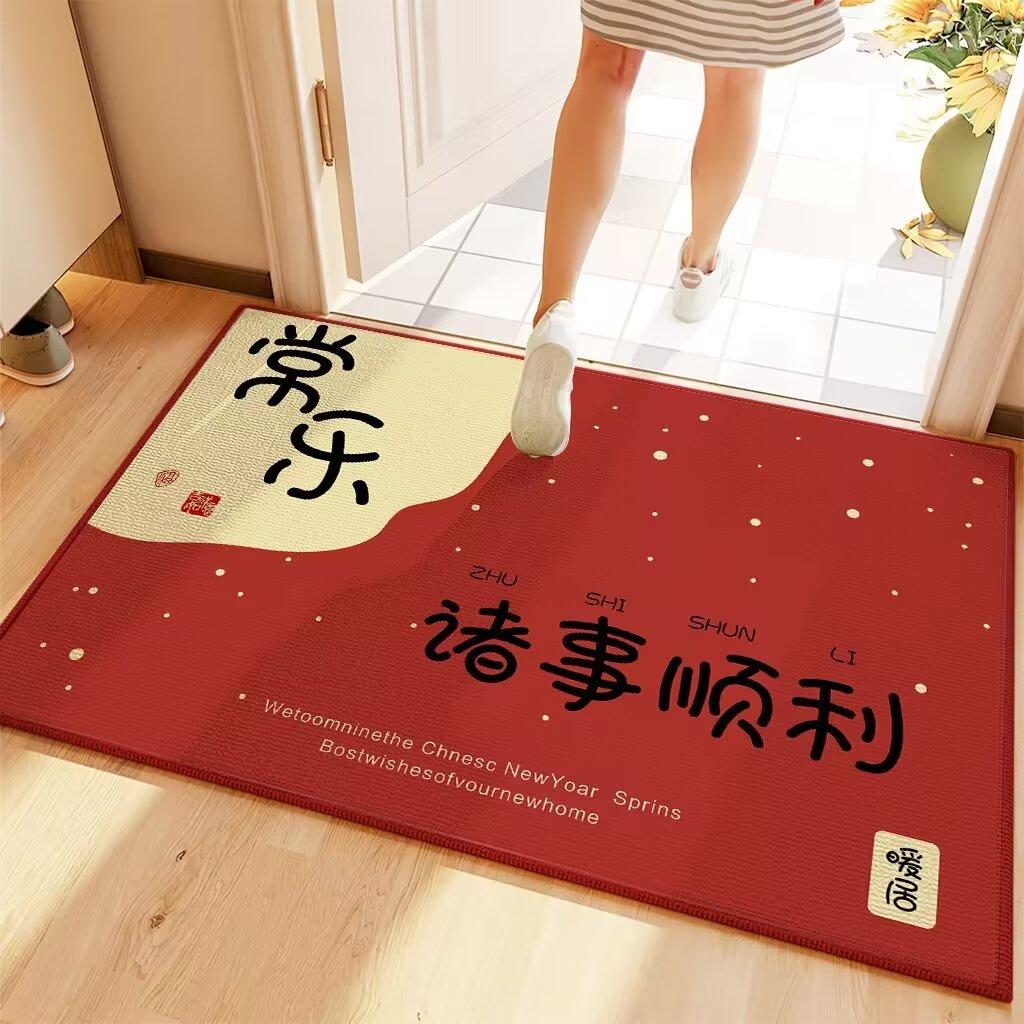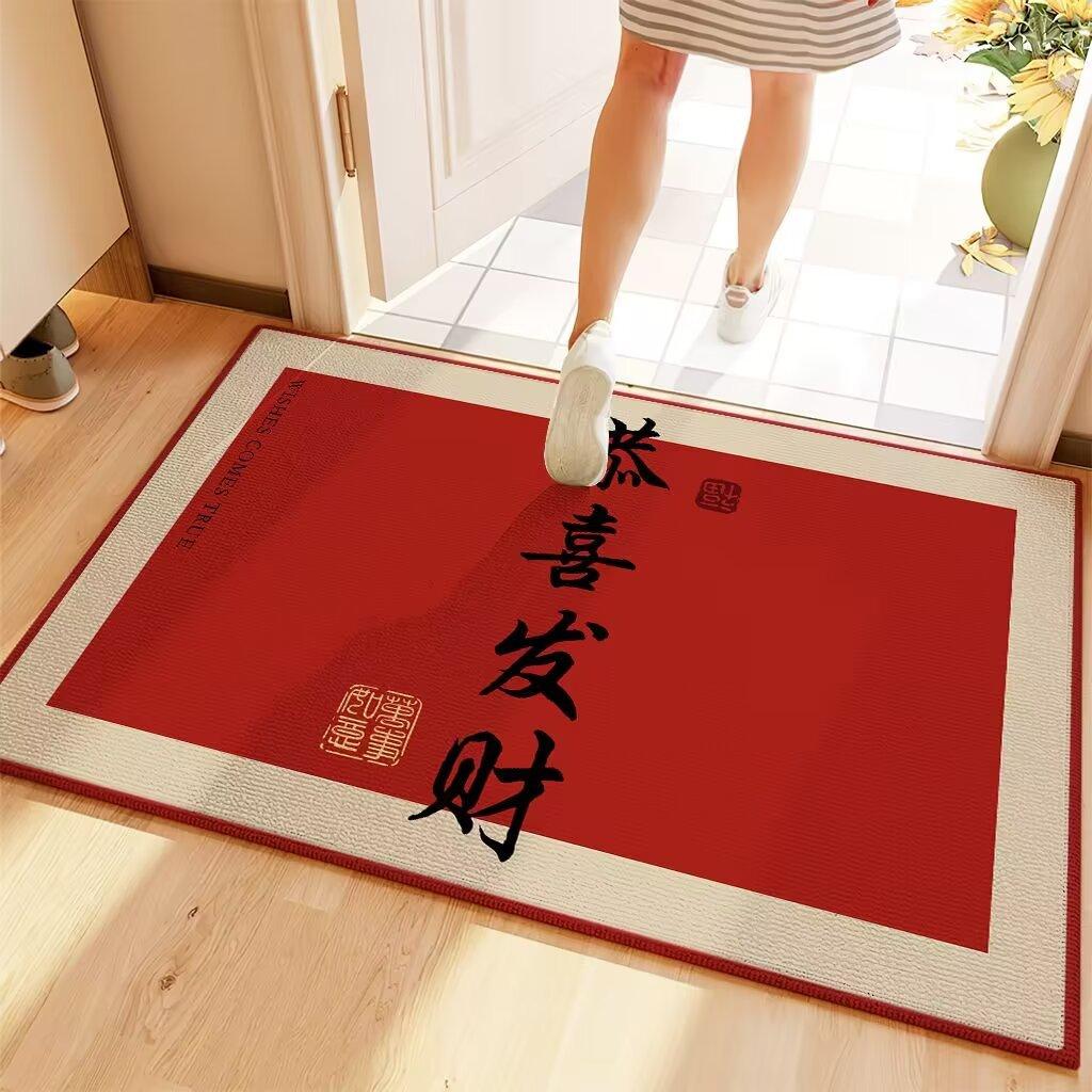 Felpudo rojo para puerta de entrada, resistente a la suciedad, antideslizante, festivo, rojo