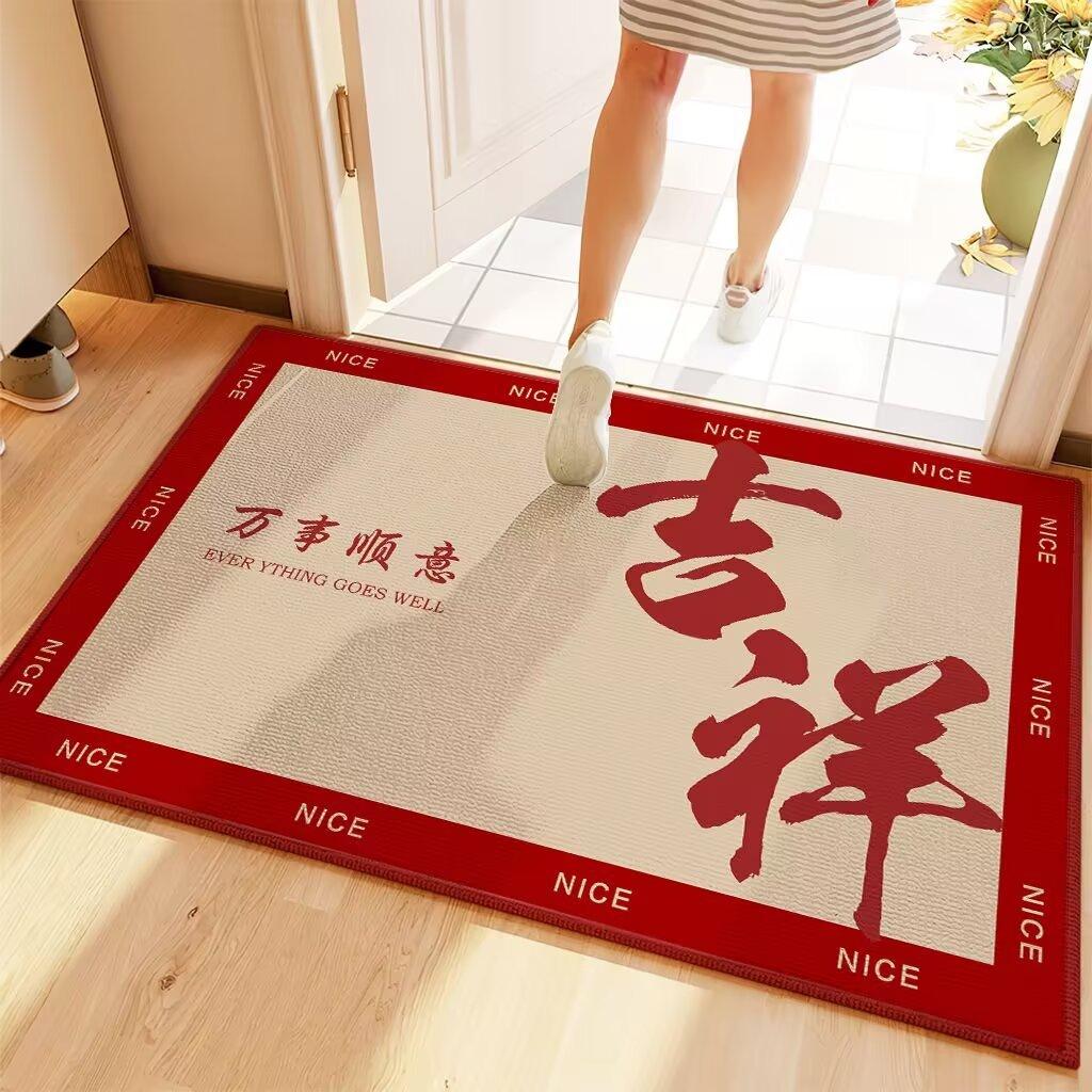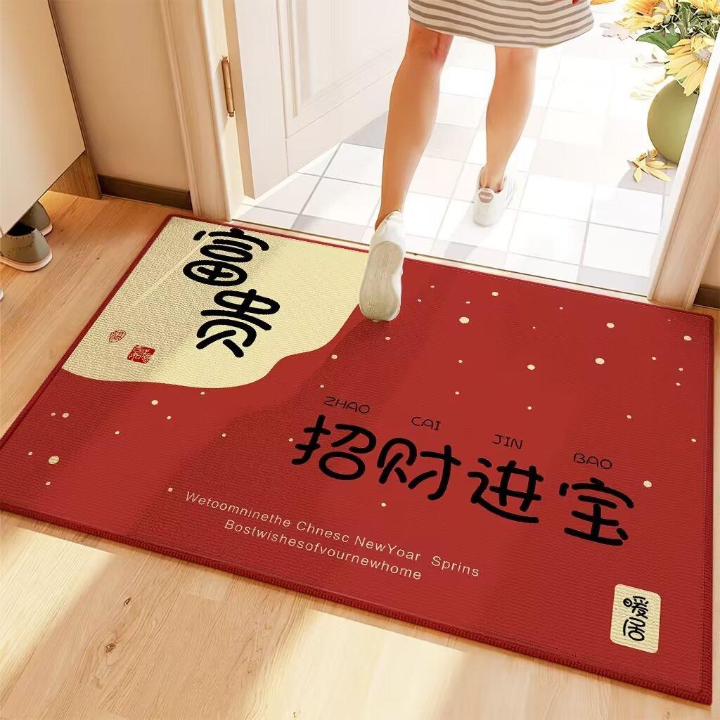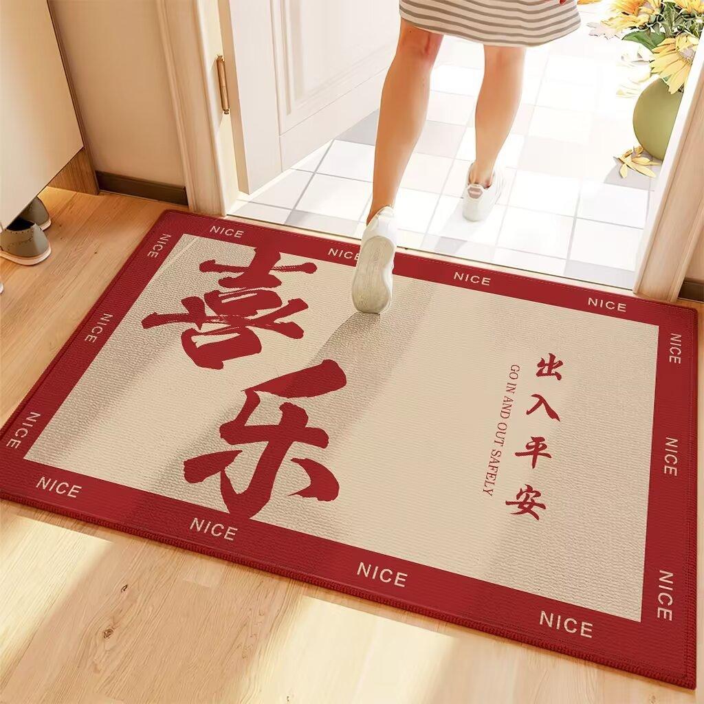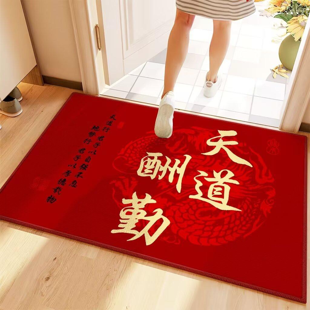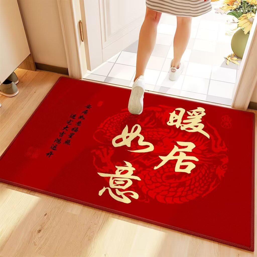Felpudo rojo para puerta de entrada, resistente a la suciedad, antideslizante, festivo, rojo