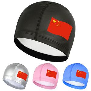 Gorro de Natación de PU Estampado con Bandera Unisex Cómodo Impermeable Sin Presión en la Cabeza Gorro de Natación para Adulto Cabello Largo Protección para los Oídos Gorro de Natación al Por Mayor