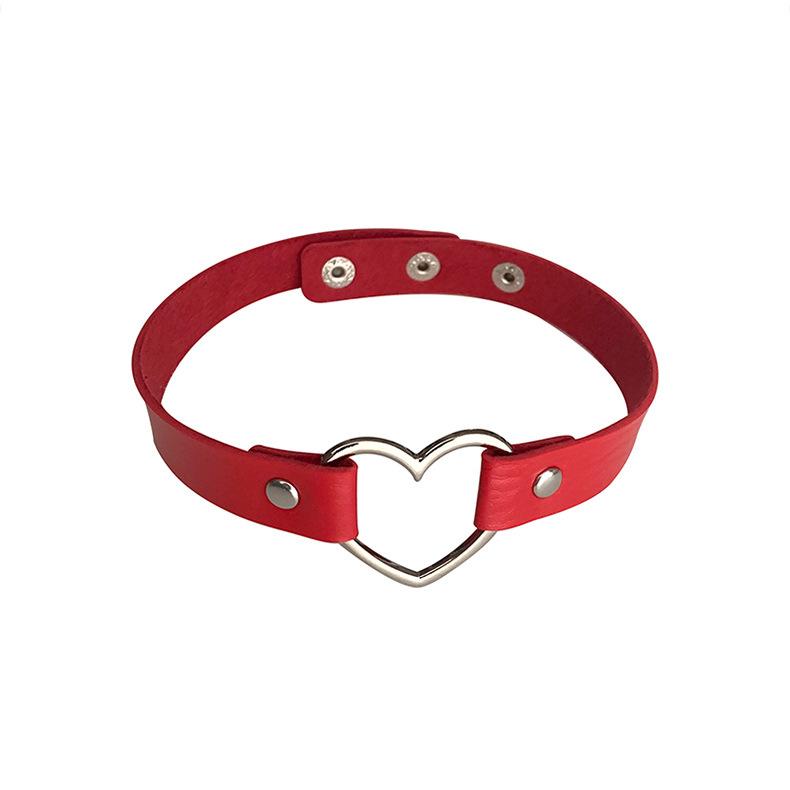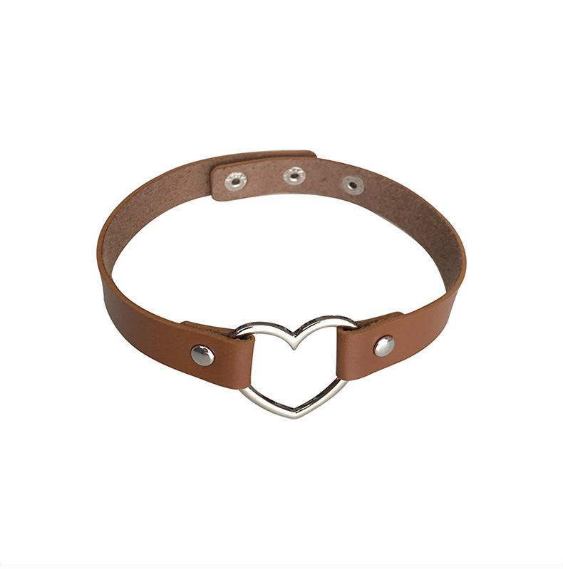 Collar con cadena de clavícula de cuero sintético estilo punk para chica, estilo Harajuku, con forma de corazón de melocotón, correa para el cuello, gargantilla para mujer, collar de celebridades de Internet