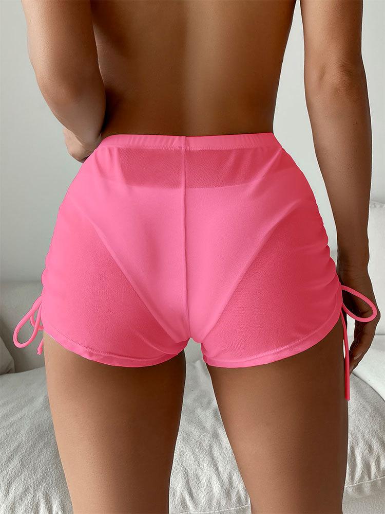 Bañador de cintura alta de malla de Amazon, nuevo bañador de color sólido 2023, bikini con cordón europeo y americano para mujer, bañador de comercio exterior.