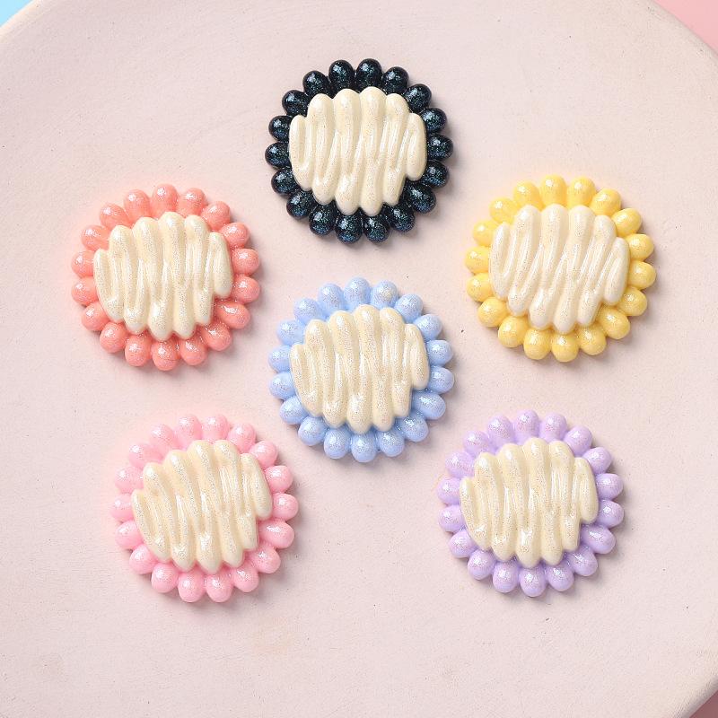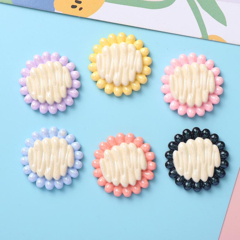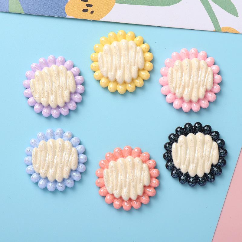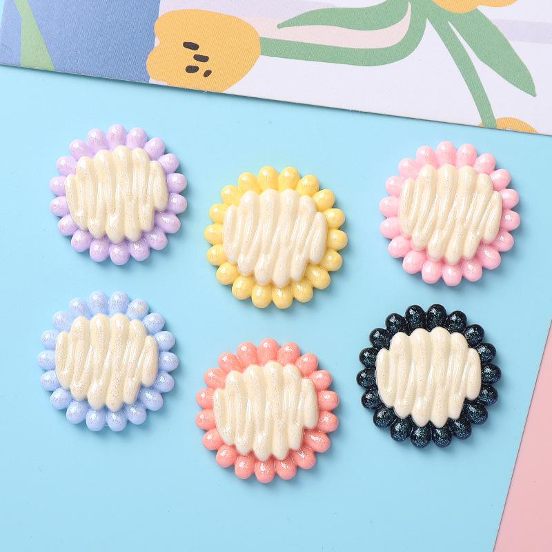 Pieza de pegamento de crema redonda brillante de dibujos animados, accesorios de resina para bricolaje, joyería hecha a mano, horquilla para el cabello, funda para teléfono, taza de agua, tocado