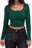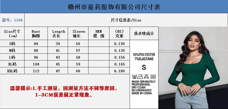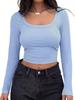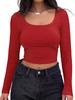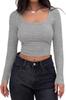 2024 Amazon Europeo y Americano Acanalado Ajustado Manga Corta Larga Cuello Cuadrado Camiseta para Mujer Moda Versátil Comercio Transfronterizo
