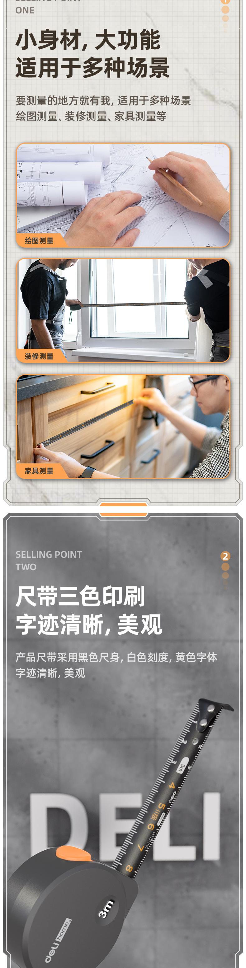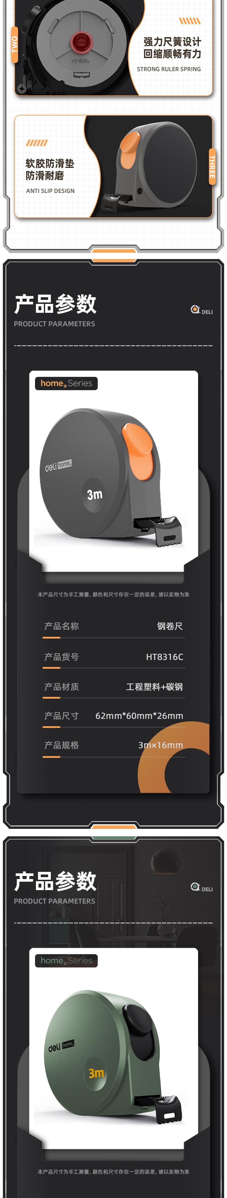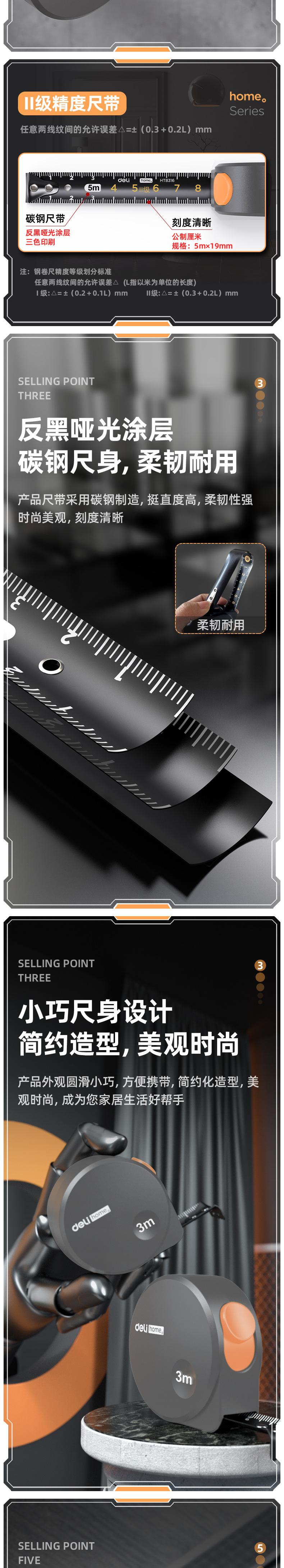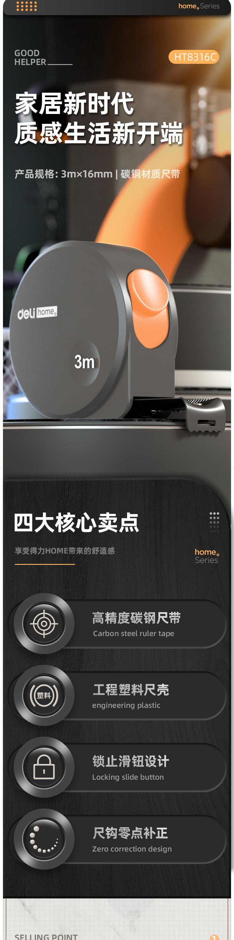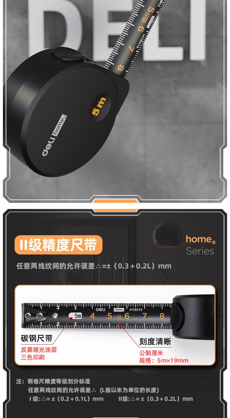 Regla de medición engrosada de cinta de acero de alta precisión para el hogar, herramienta Deli, 3/5 m, HT8 316 519 CL