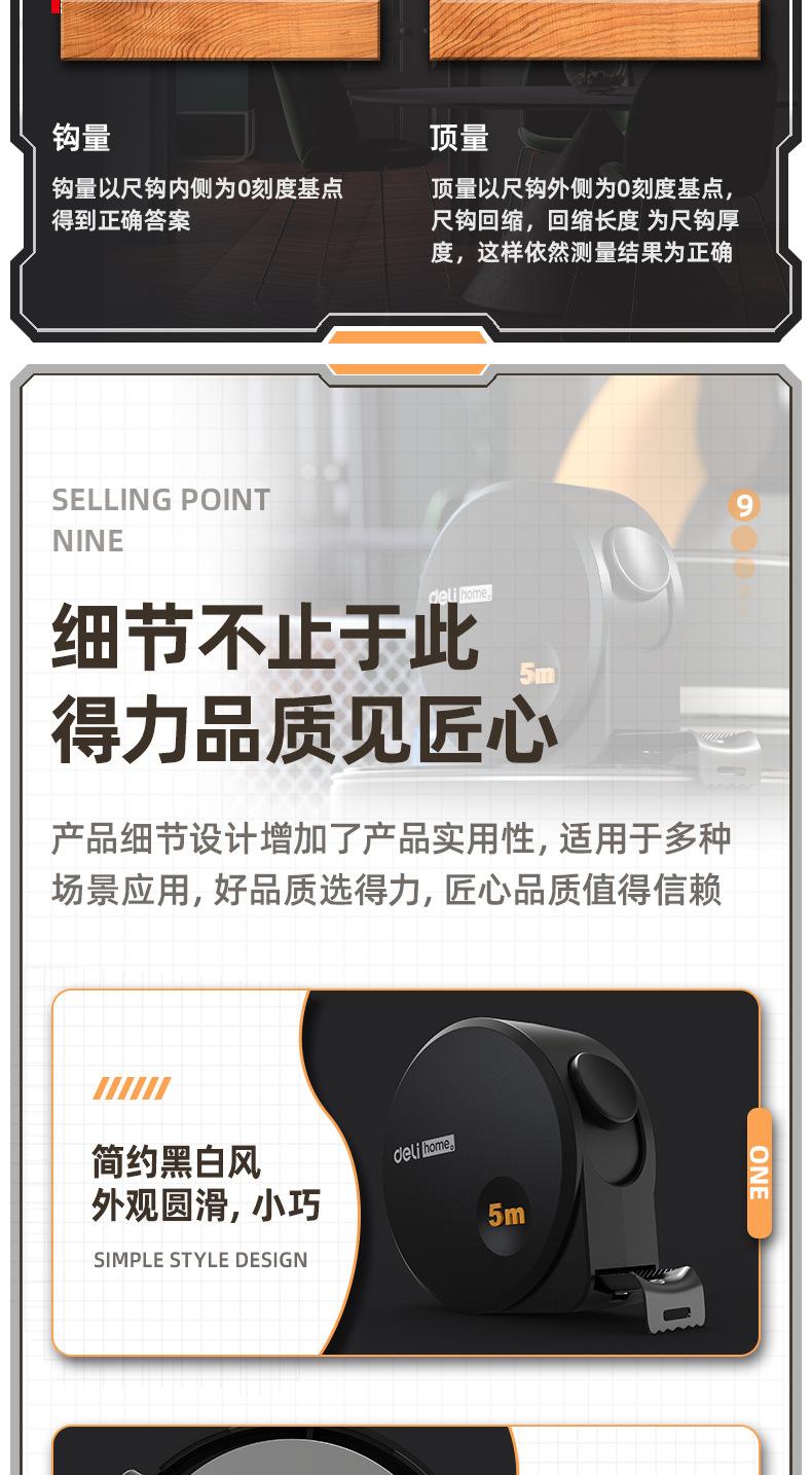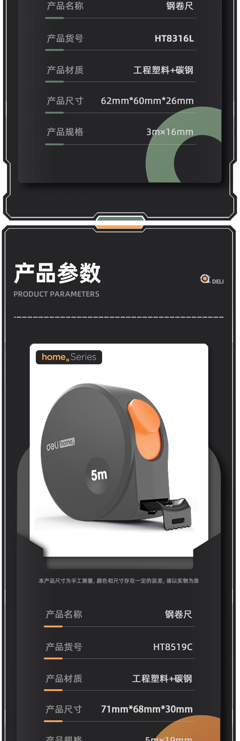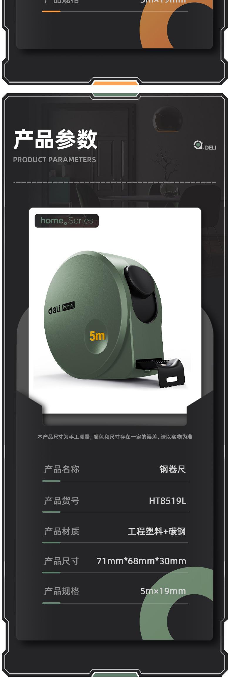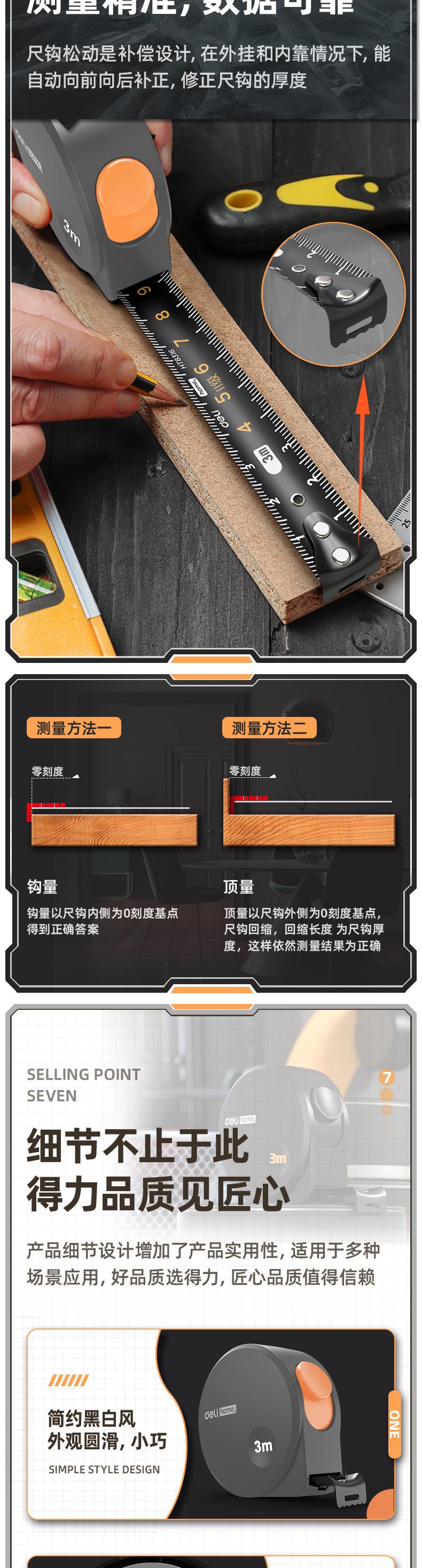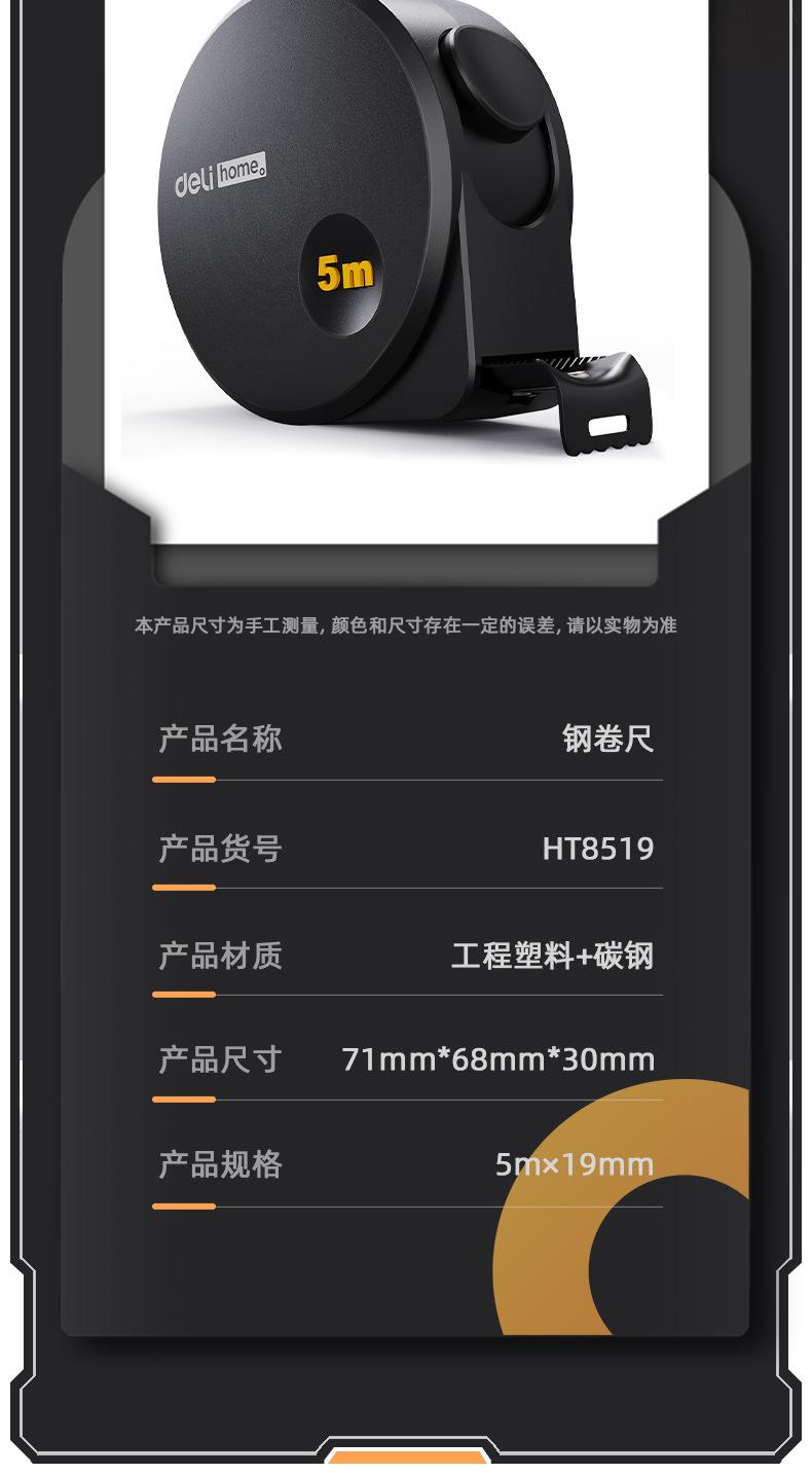 Regla de medición engrosada de cinta de acero de alta precisión para el hogar, herramienta Deli, 3/5 m, HT8 316 519 CL