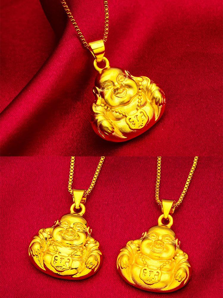 Collar con colgante de Buda para mujer, esmerilado brillante, collar con colgante de Buda Maitreya, colgante sólido de Buda