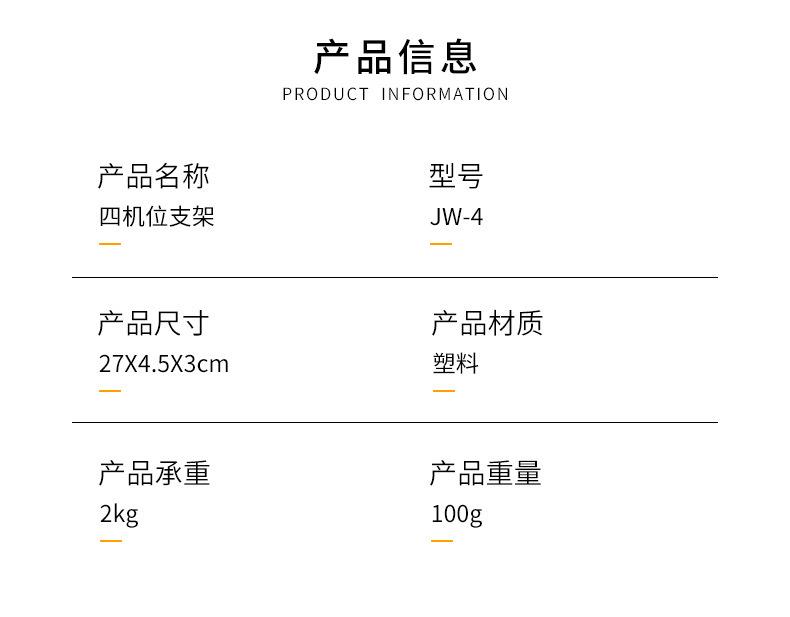 Plastic 4 camera positions (including 3 mobile phone holders)