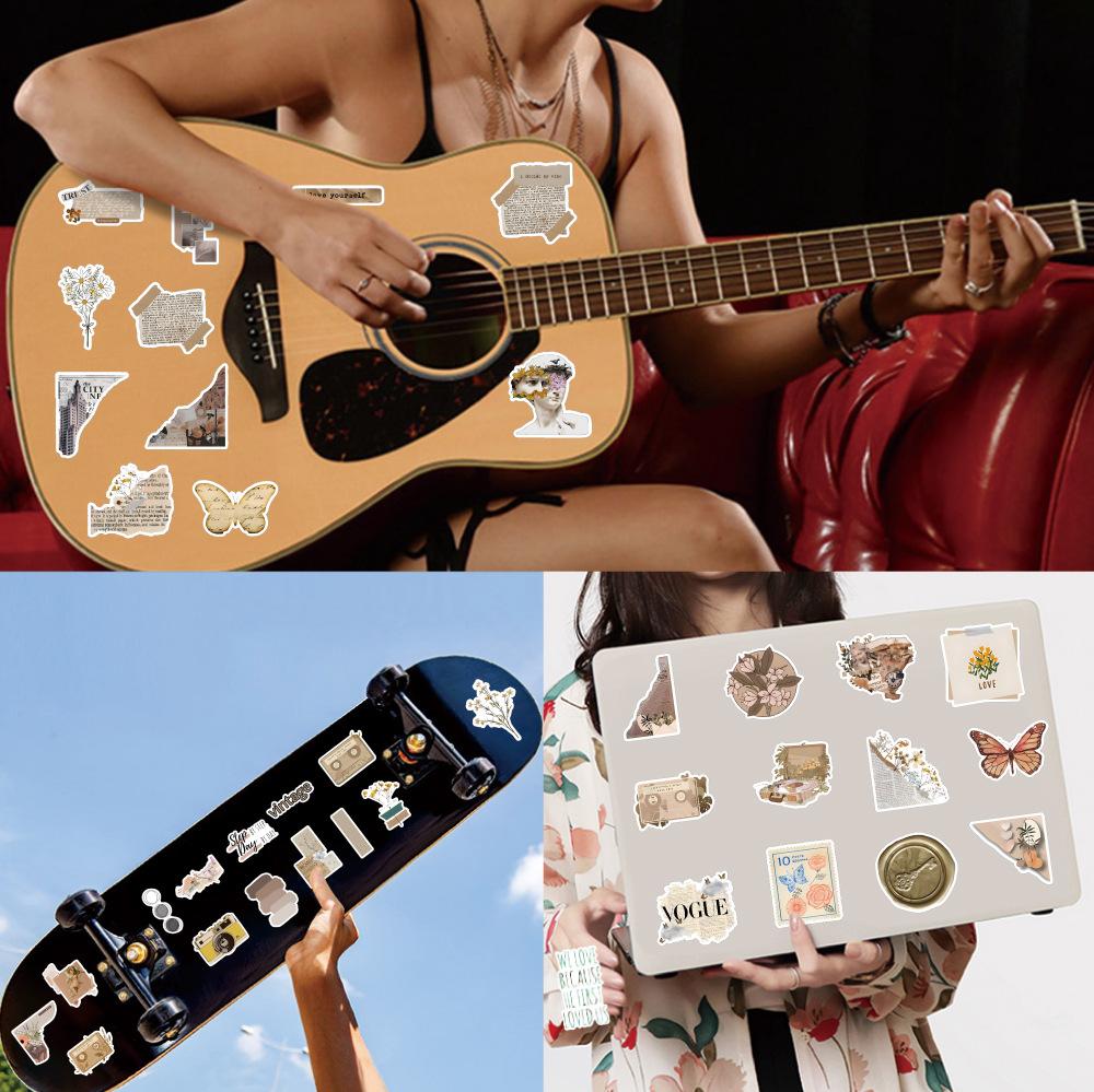Las pegatinas se pueden pegar en computadoras portátiles, artículos de papelería, maletas, motocicletas, scooters, muebles, libros, refrigeradores, teléfonos móviles y en cualquier lugar.