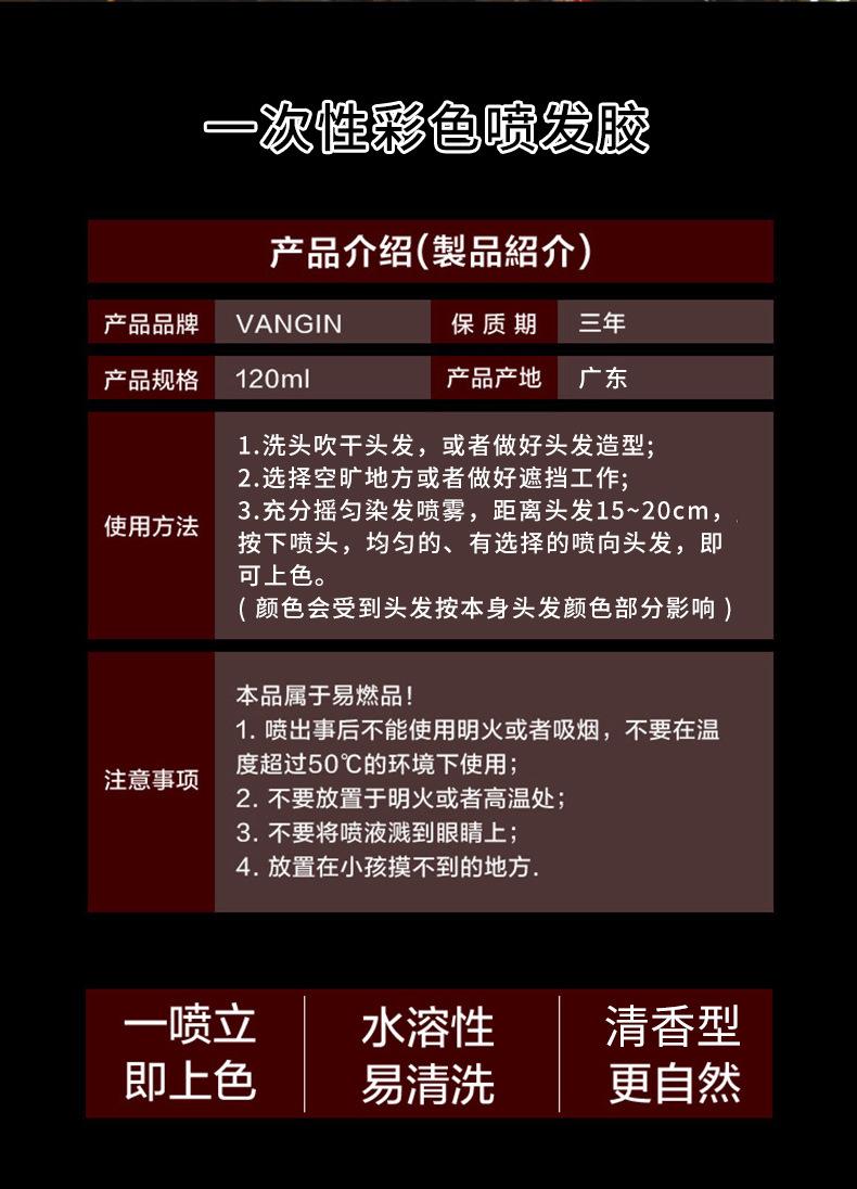 Vangin Spray Colorante Desechable Colorante Temporal para el Cabello Spray Colorido Un Spray Spray para el Cabello Negro Venta Directa de Fábrica