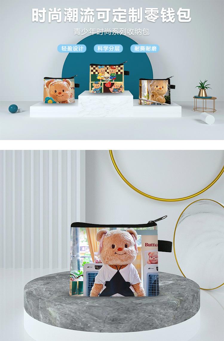 Monedero de oso de mantequilla nuevo transfronterizo para estudiantes, lindo, mini, de almacenamiento, para llaves, tarjetas, bolsa de poliéster de gran capacidad