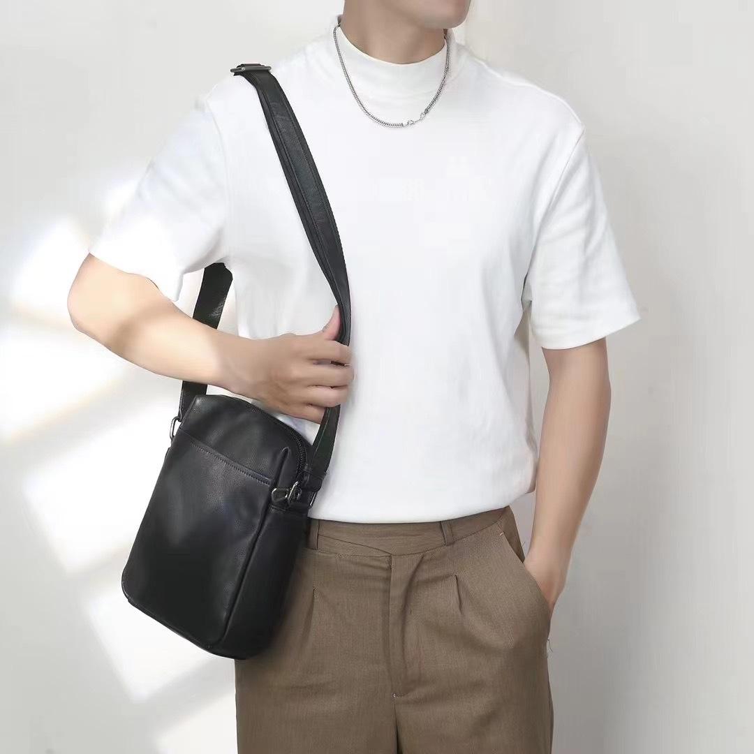 Bolso de hombro al por mayor, bolso de cuero genuino para hombre, bolso de mensajero de piel de vaca, bolso de mano vertical de color sólido, bolso de mensajero para hombre