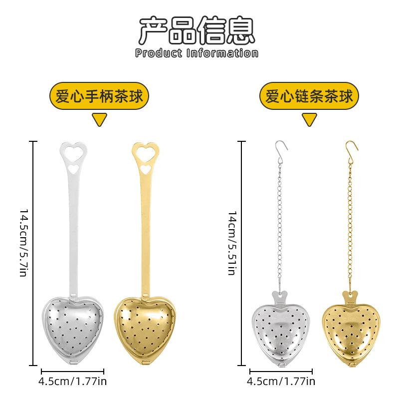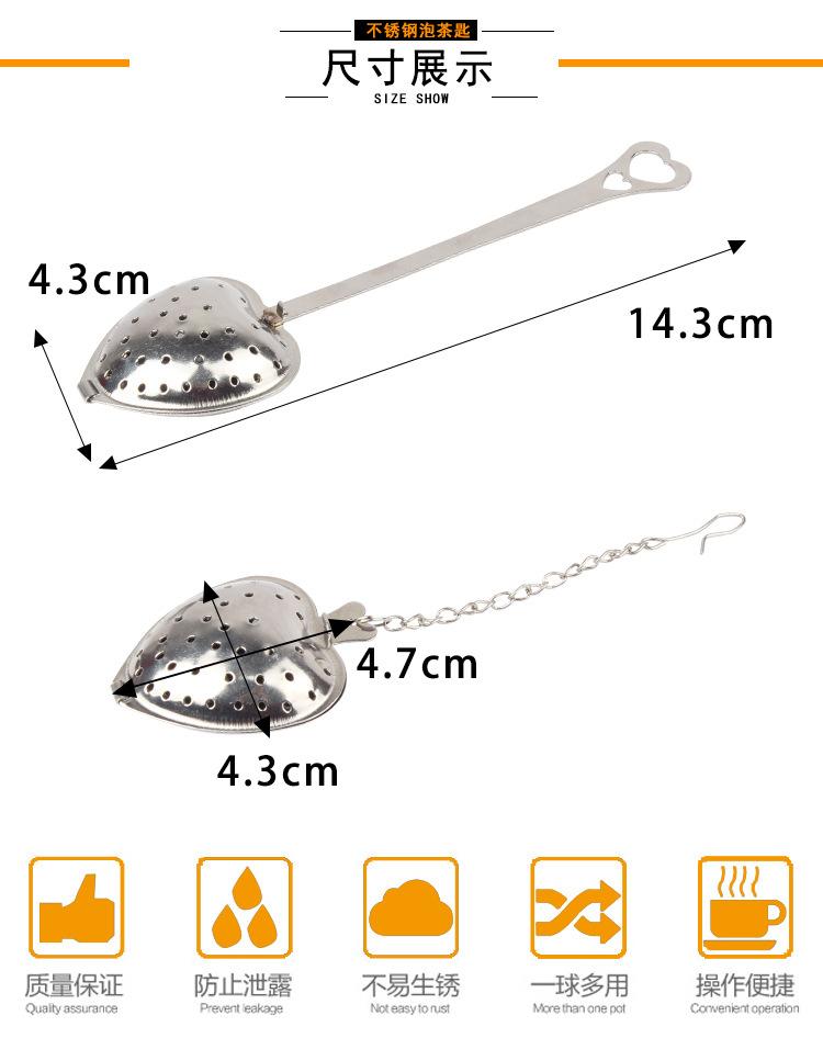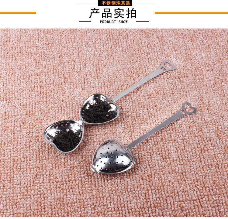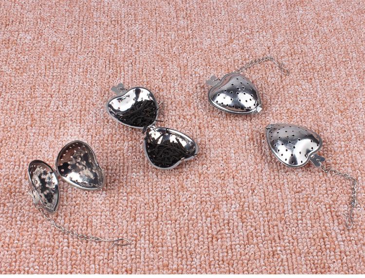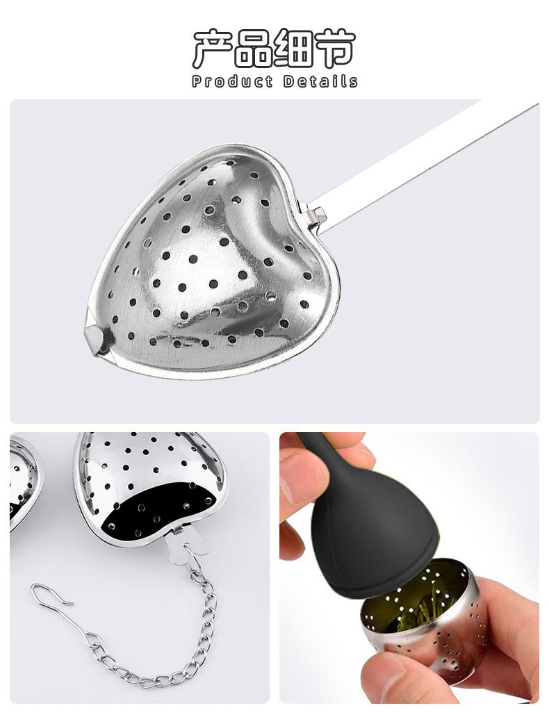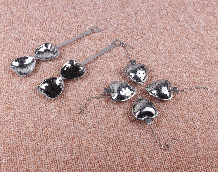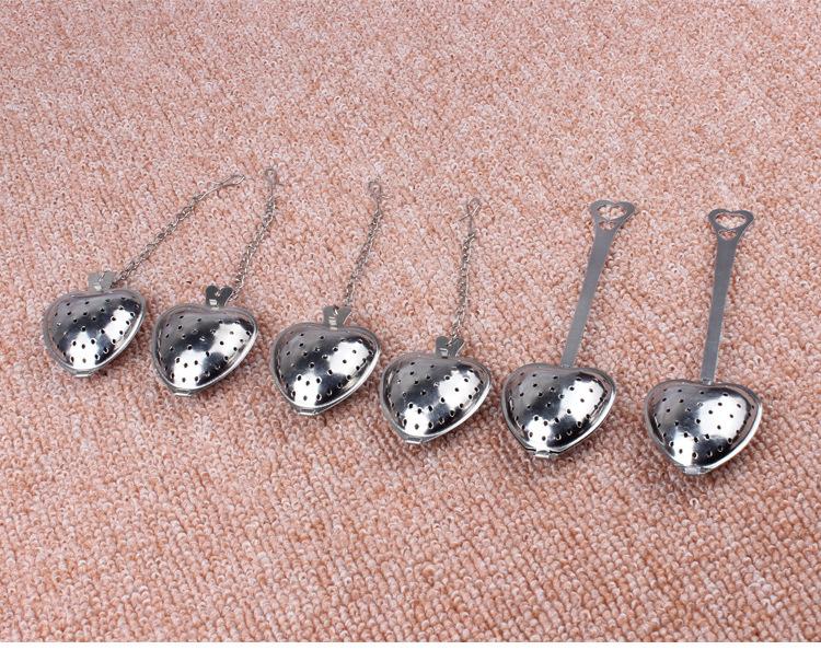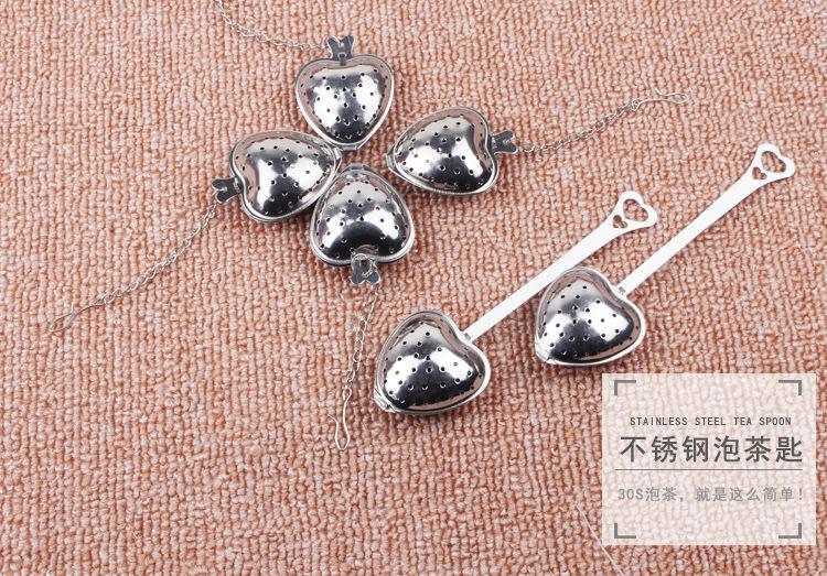Fábrica directa 304 acero inoxidable amor filtro de té con asa cadena filtro de té filtro de té en forma de corazón cuchara