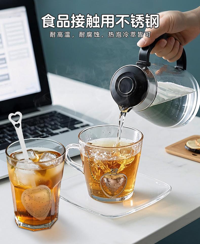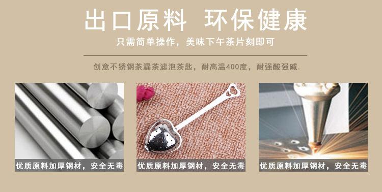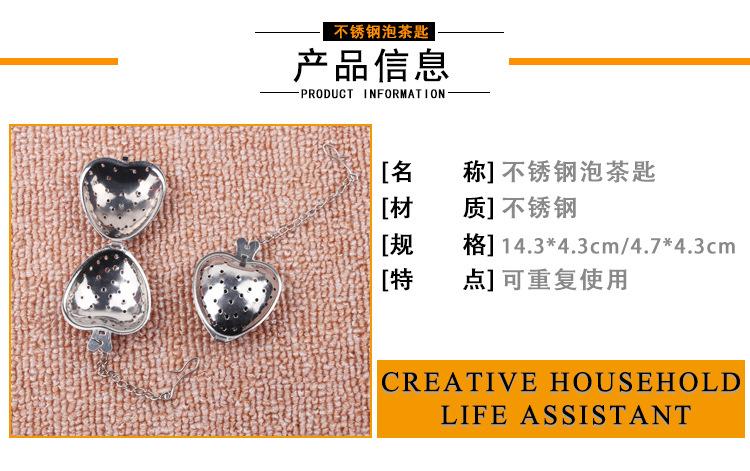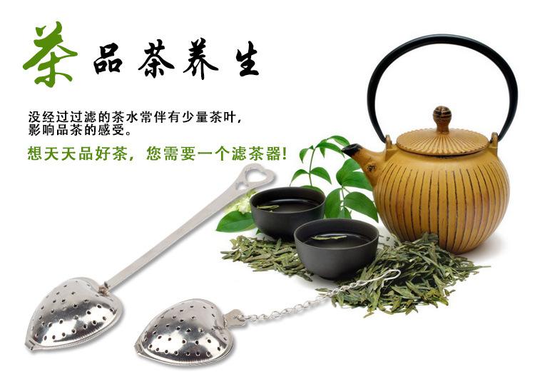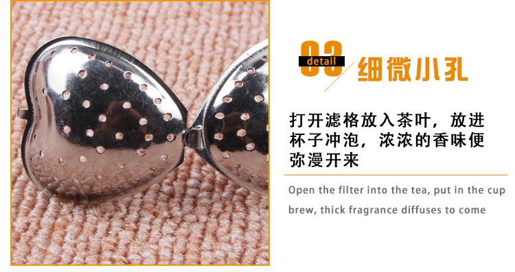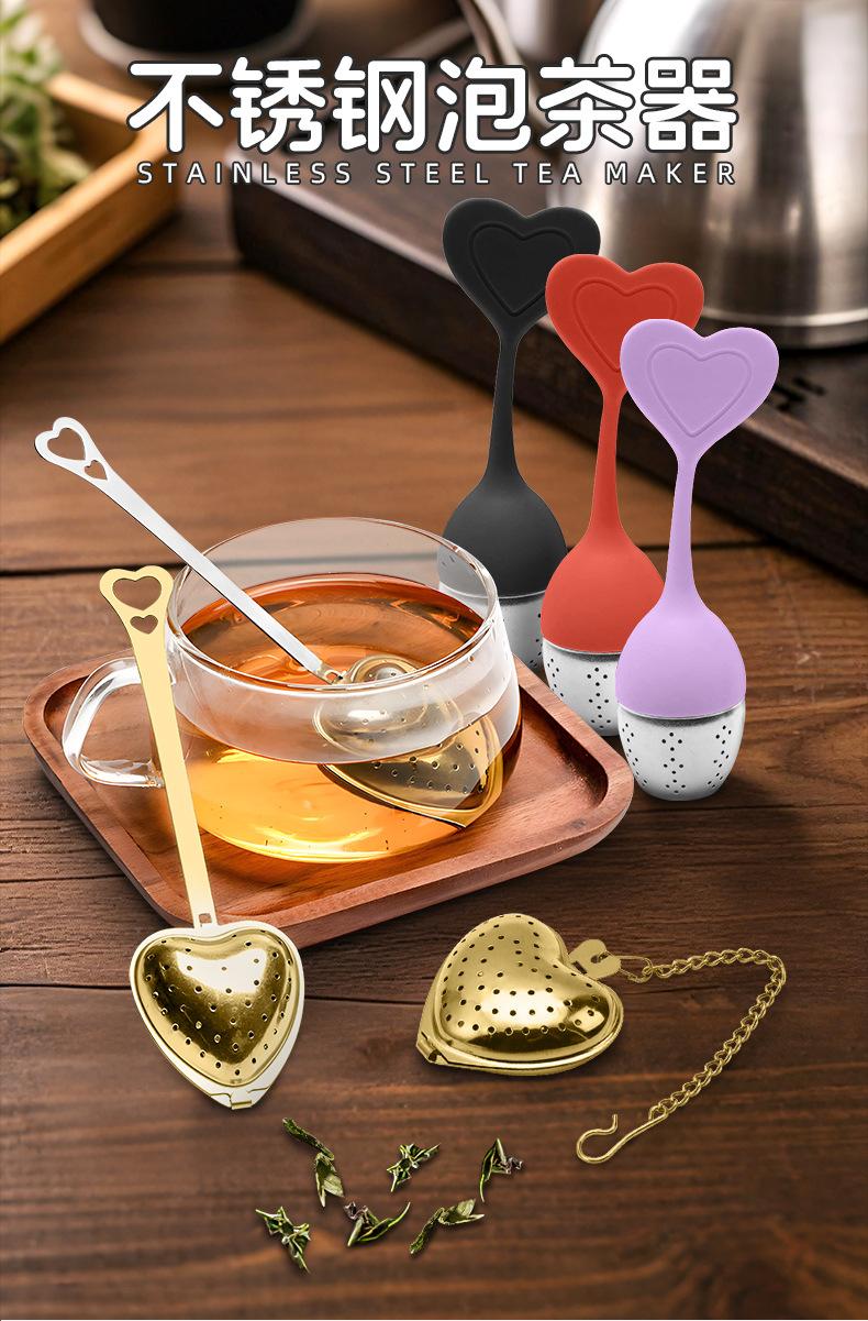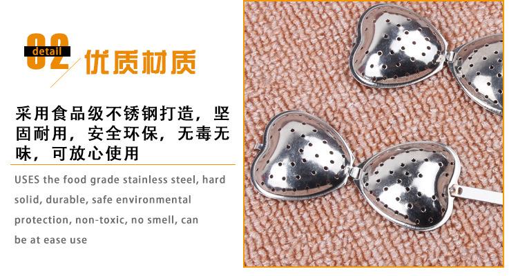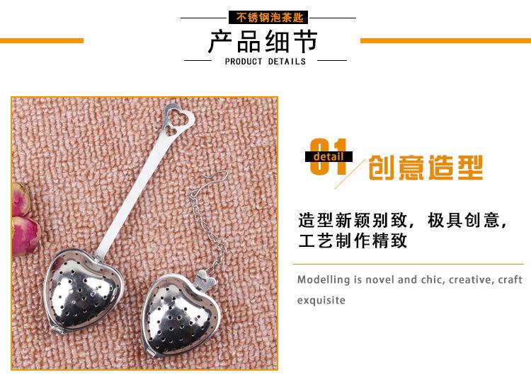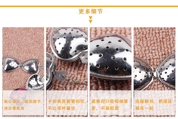 Fábrica directa 304 acero inoxidable amor filtro de té con asa cadena filtro de té filtro de té en forma de corazón cuchara