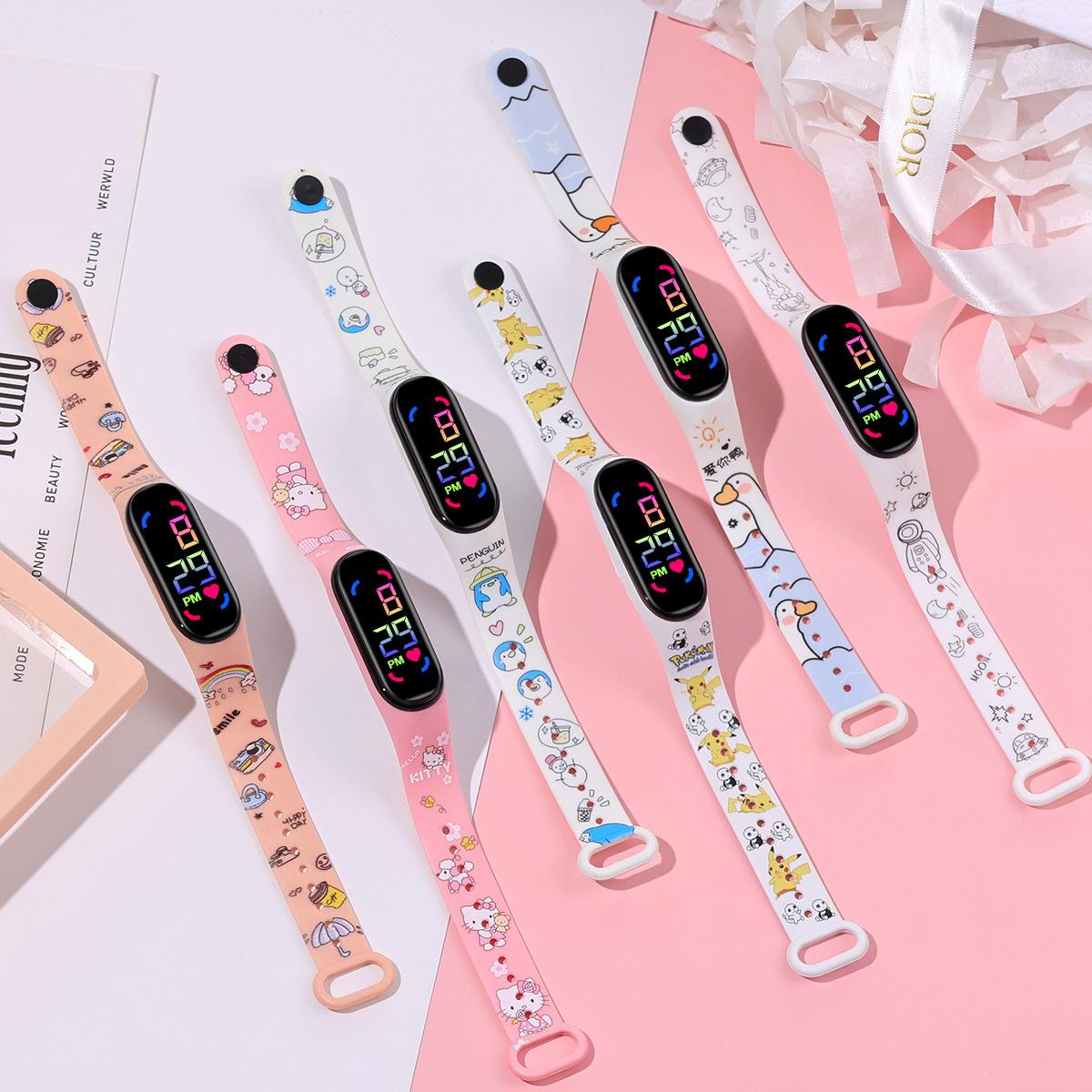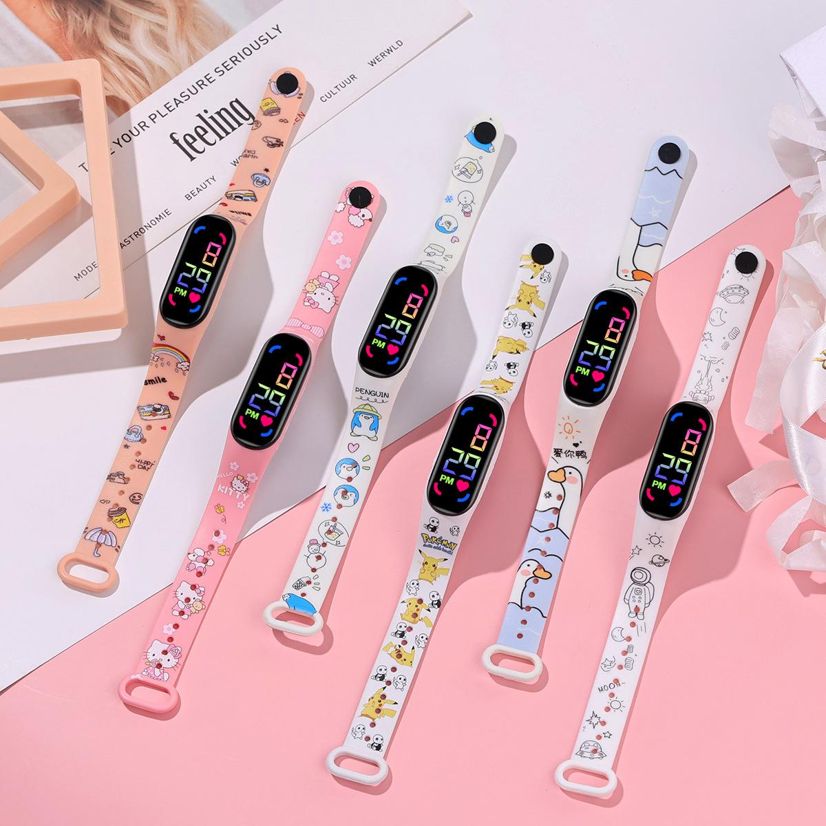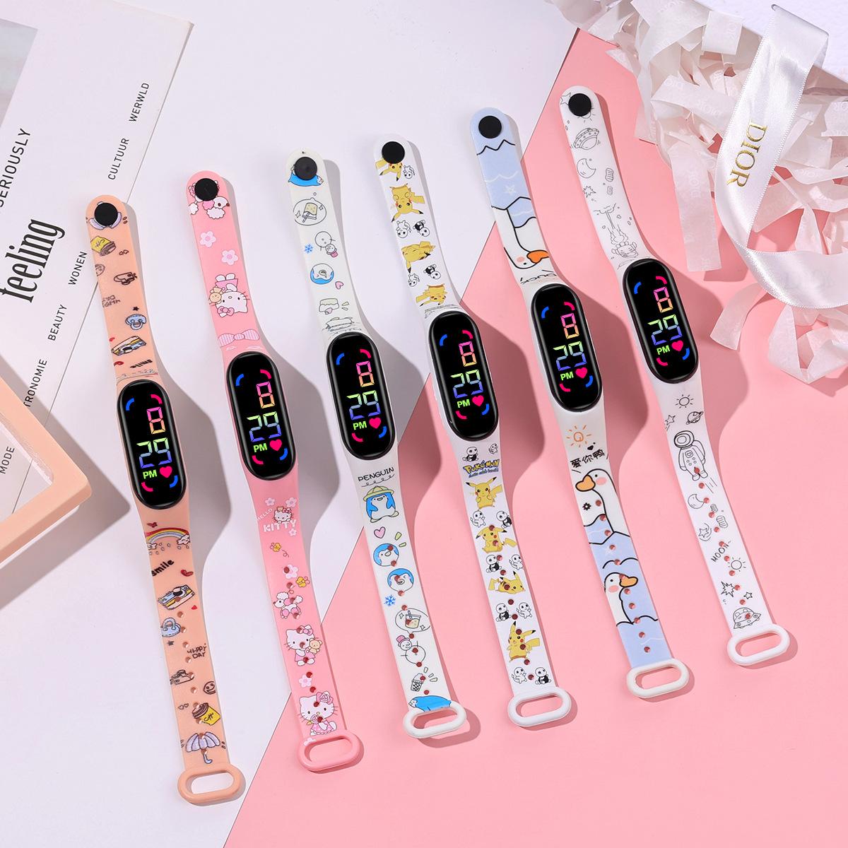 Ventas Directas de Fábrica Reloj Electrónico LED Impermeable con Impresión de Dibujos Animados Personalizado Pulsera para Estudiantes de Primaria y Secundaria Reloj Deportivo Simple