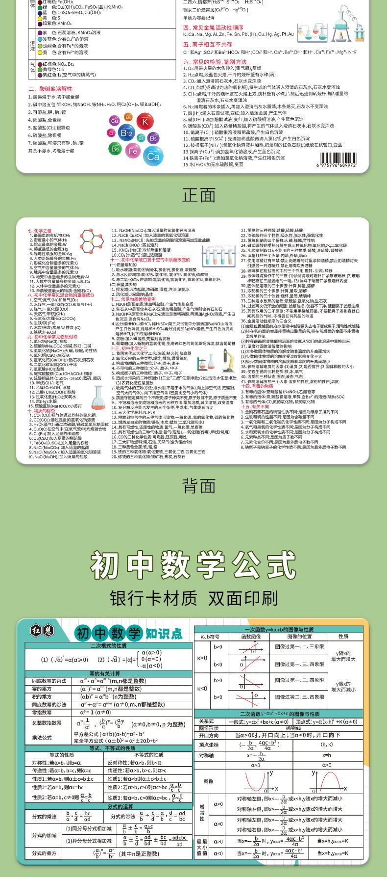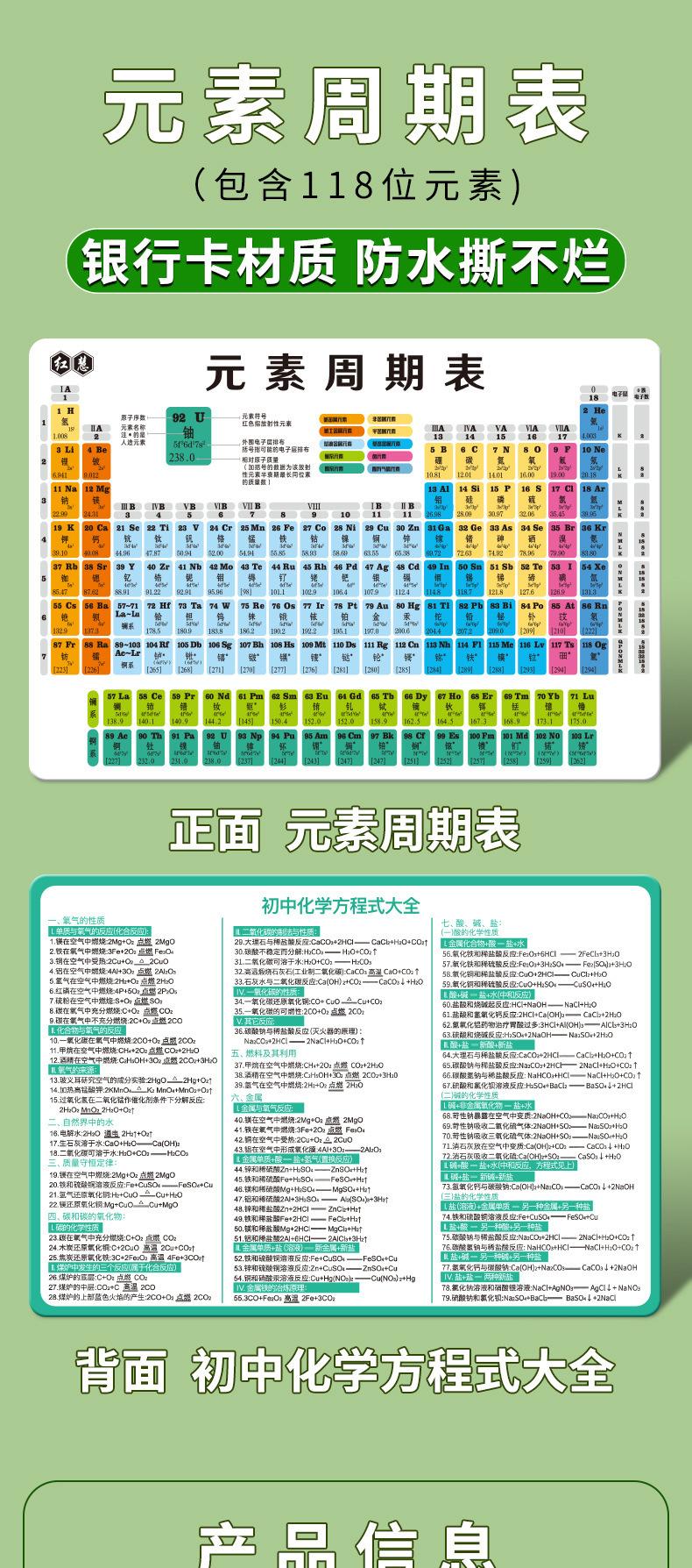 Junior high school chemical element periodic table and equation [bank card material]], Junior high school chem...