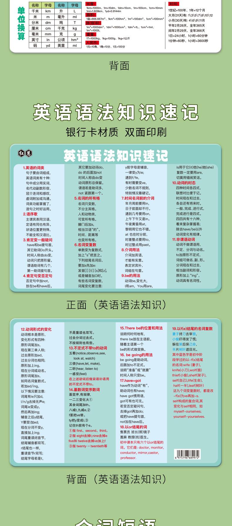 Junior high school English grammar knowledge shorthand [bank card material]]