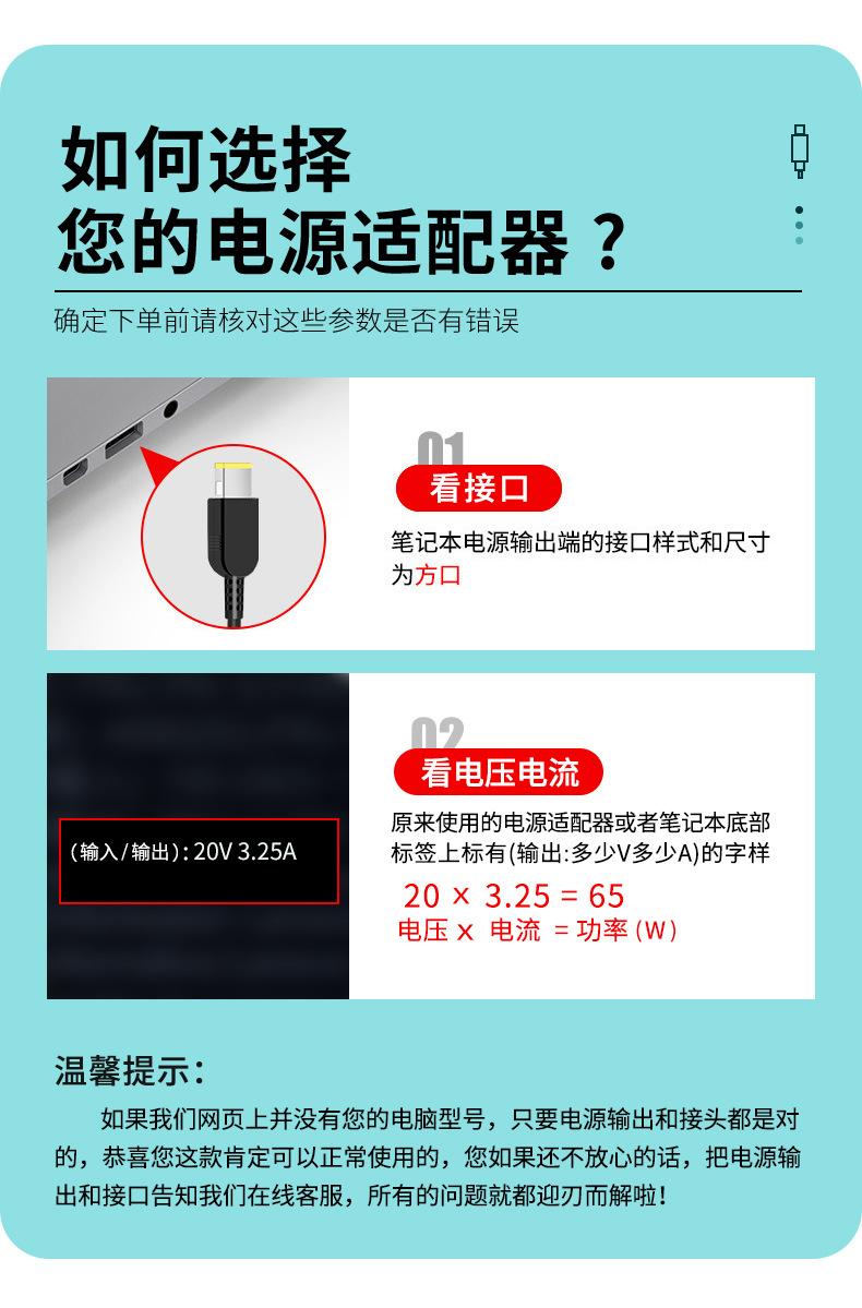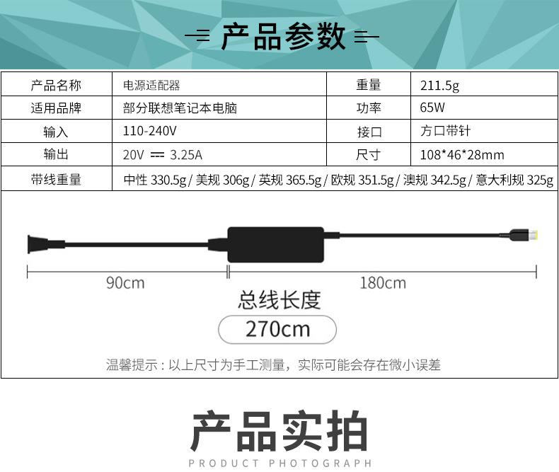 Adecuado para adaptador de corriente para portátil Lenovo 20 V 3,25 A, puerto cuadrado con pin 65 W, cargador g400