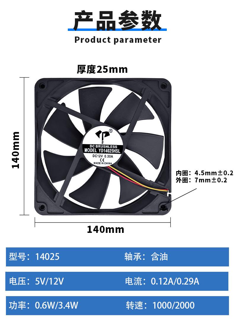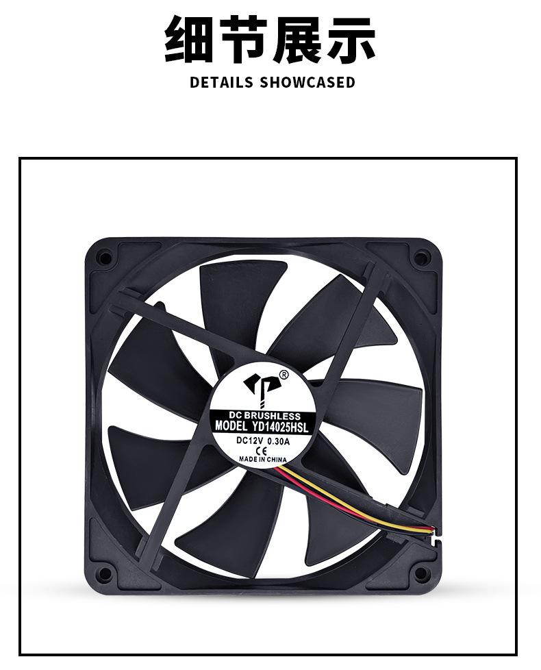 Ventilador de chasis Yida DC14025, 12 V, aceite, 0,3 A, medición de velocidad, pantalla LED, ventilador de refrigeración silencioso de 14 cm