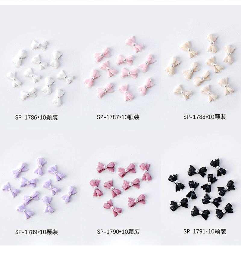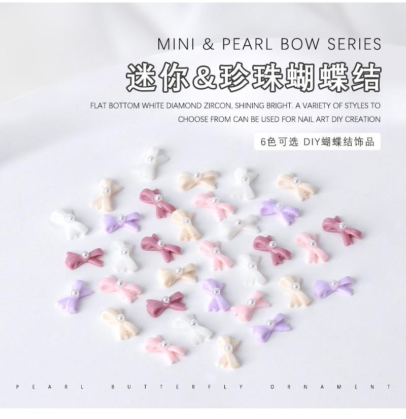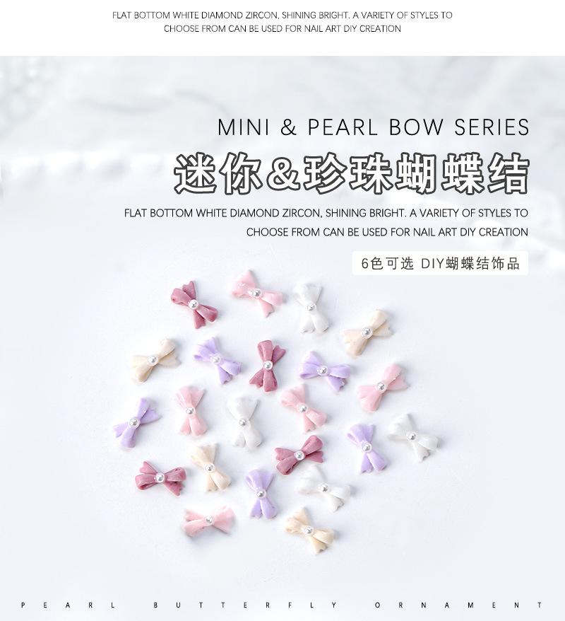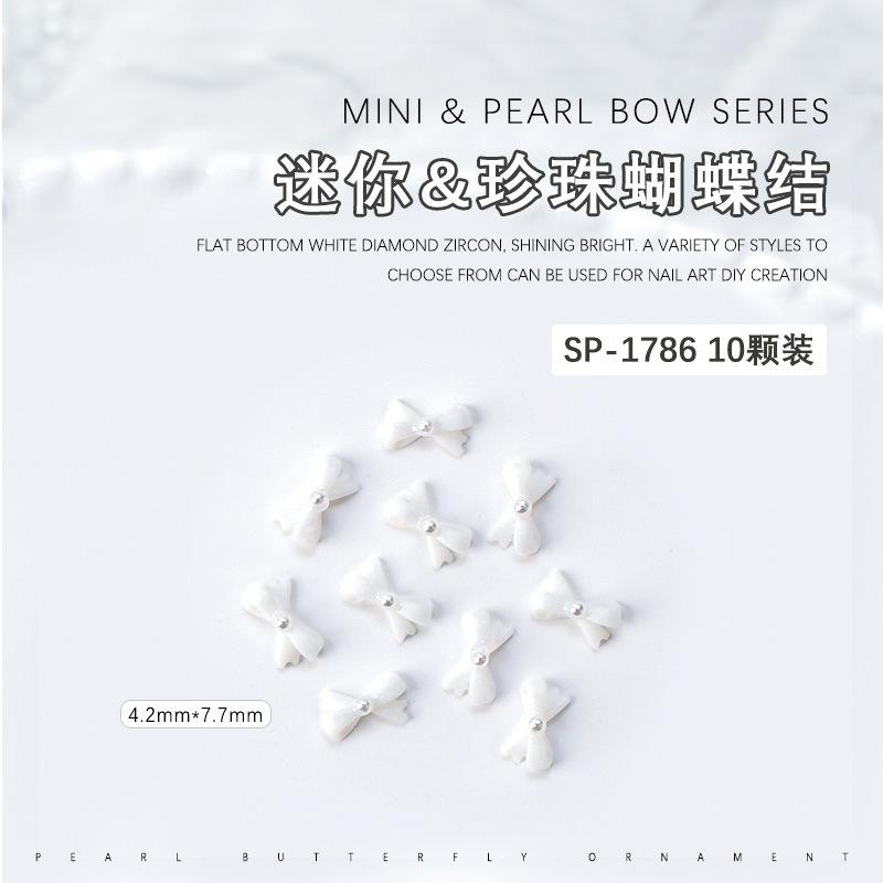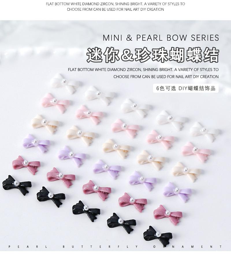 Mini lazo de resina para uñas, diseño de perla, con forma de lazo, para uñas tridimensionales, con diamantes y perlas, 10 unidades