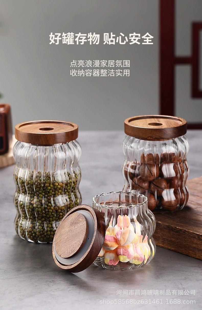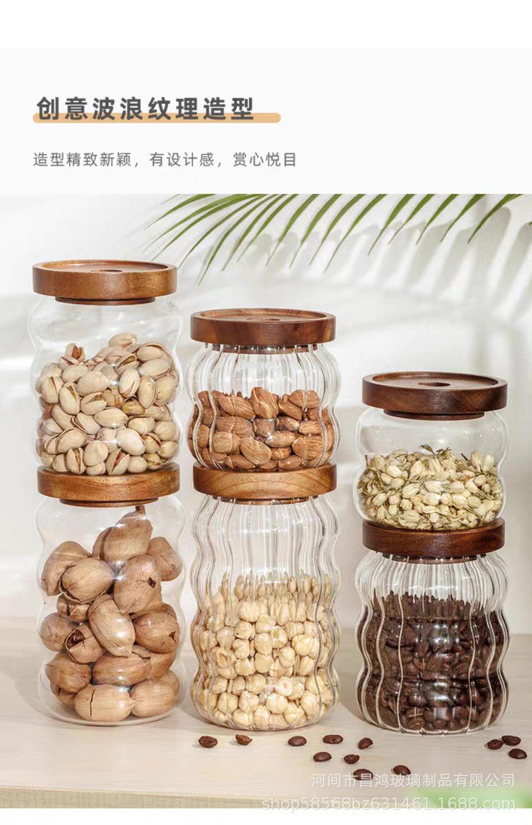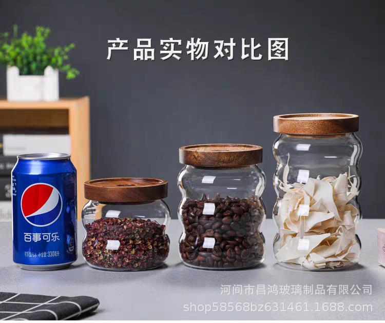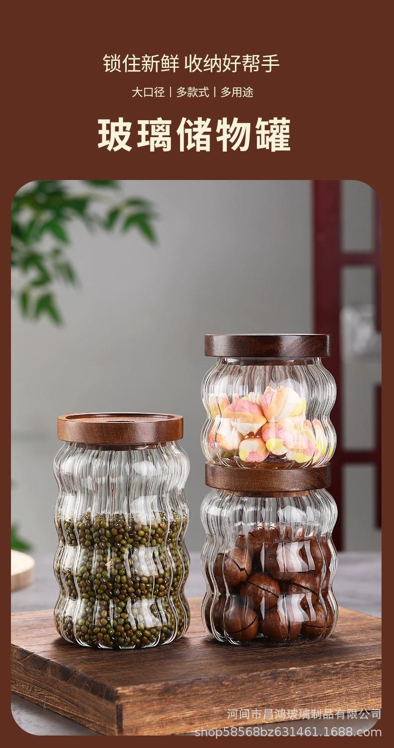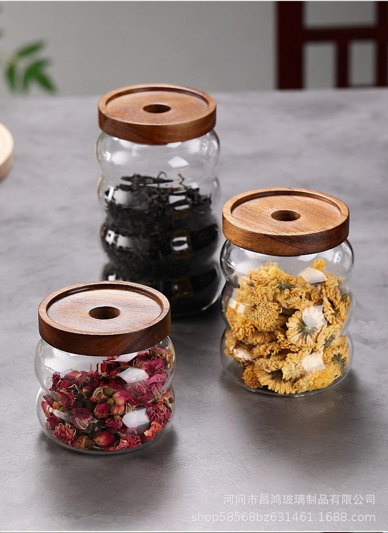Glass jar high borosilicate glass tea jar large capacity sealed jar kitchen storage jar with lid acacia wood storage jar