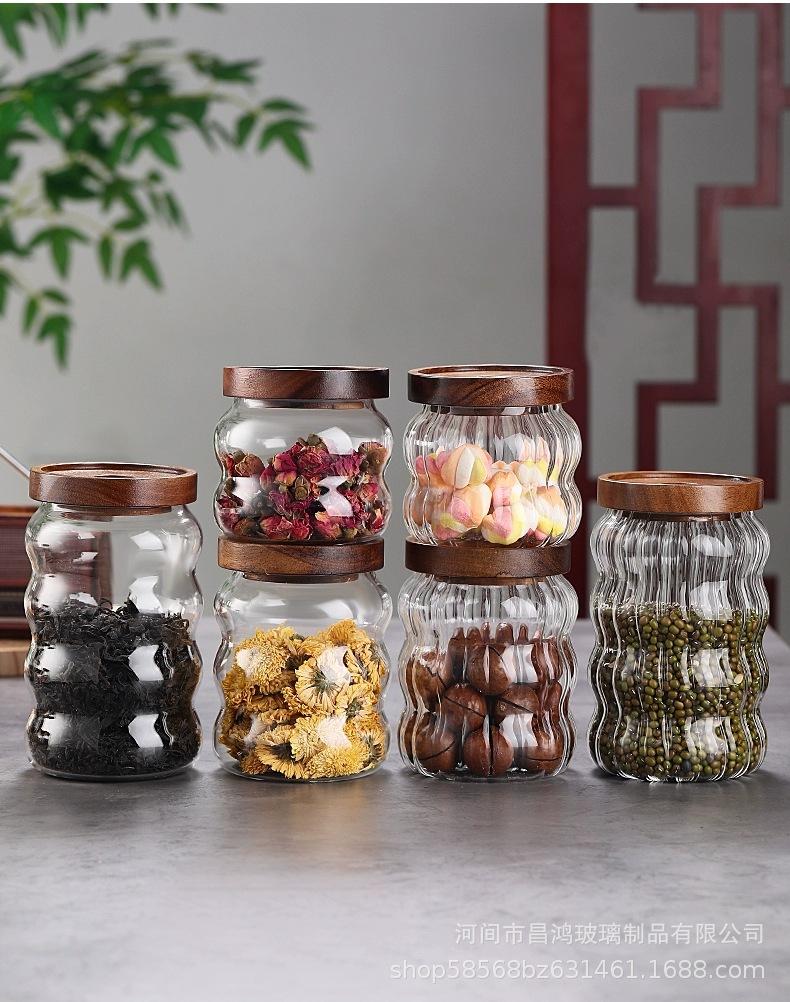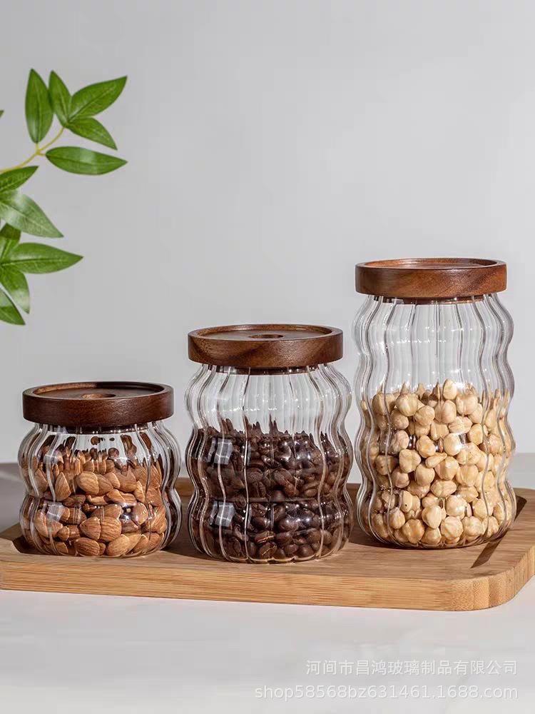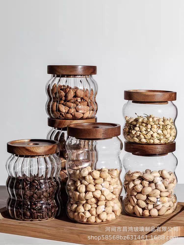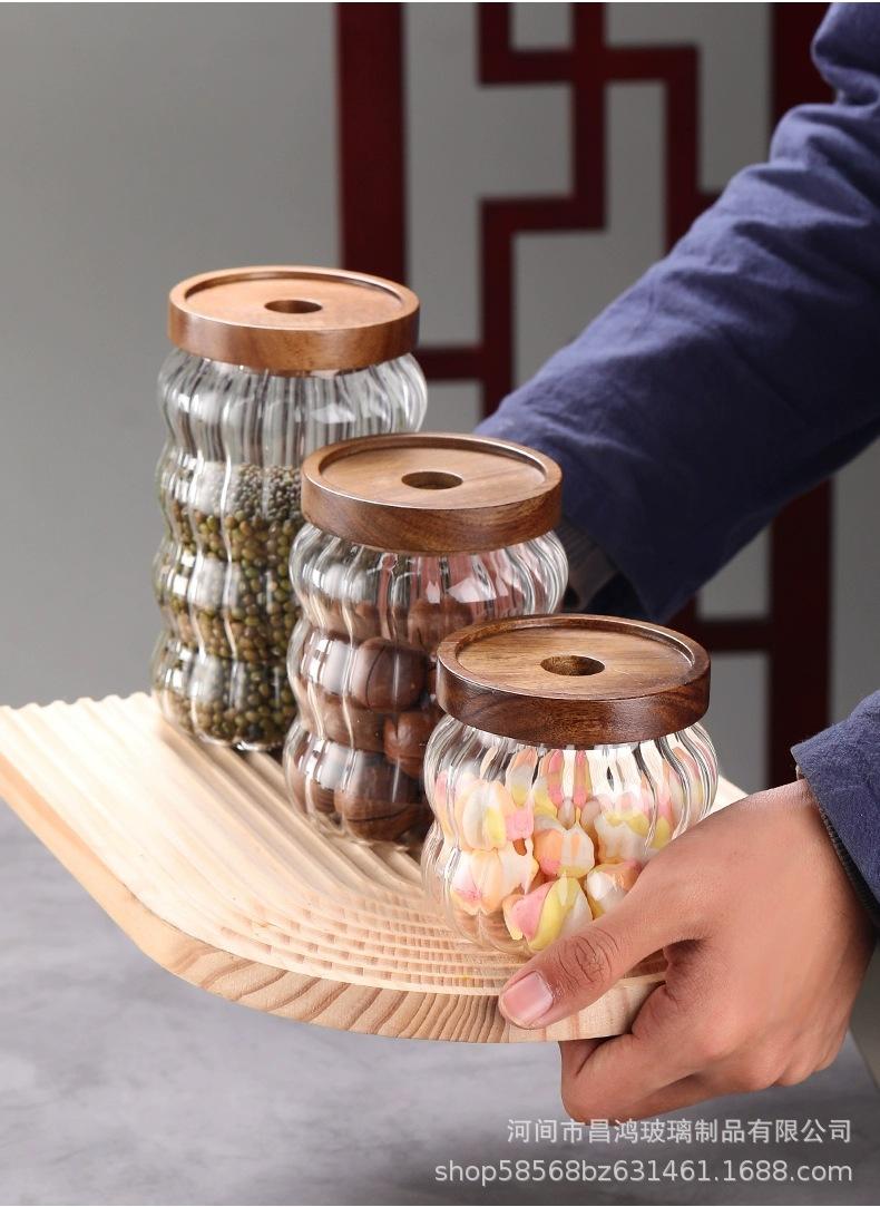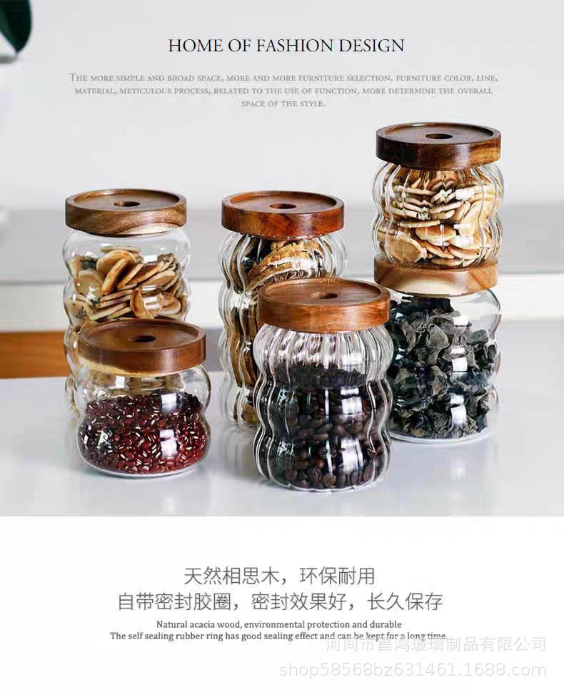Glass jar high borosilicate glass tea jar large capacity sealed jar kitchen storage jar with lid acacia wood storage jar